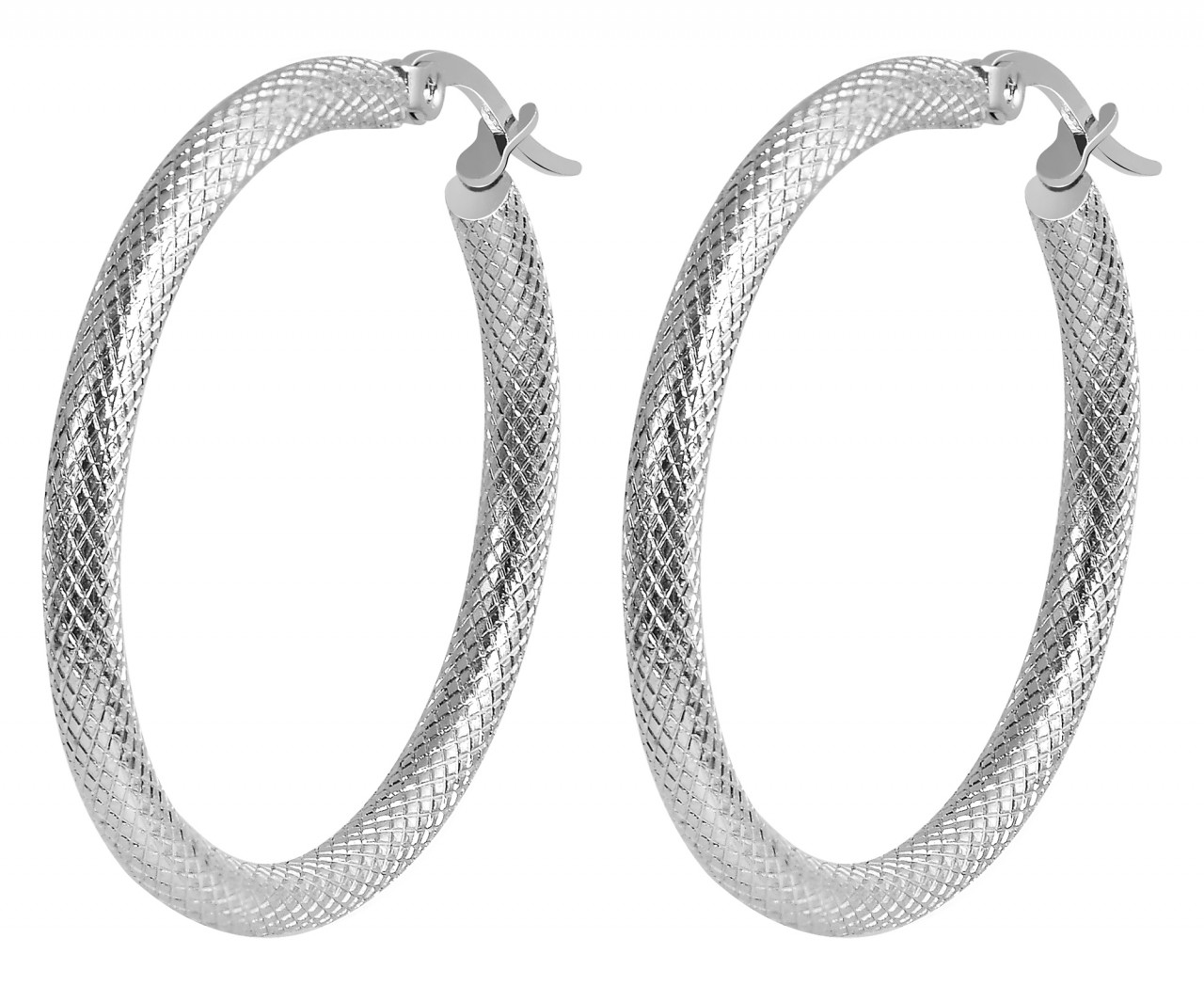 Os brincos de argola da marca Akzent são feitos de aço inoxidável. O material é robusto e garante longa vida útil, tornando os brincos um companheiro fiel e duradouro. Eles impressionam pelo seu design lúdico e acabamento texturizado. Os brincos podem ser presos ao orifício da orelha com um simples clipe. A caneta é inserida através de um ilhó redondo e fechada. Isso torna impossível abrir os brincos de argola de forma independente. Os brincos de argola são um must-have da mulher moderna e não devem faltar em nenhuma coleção de joias.