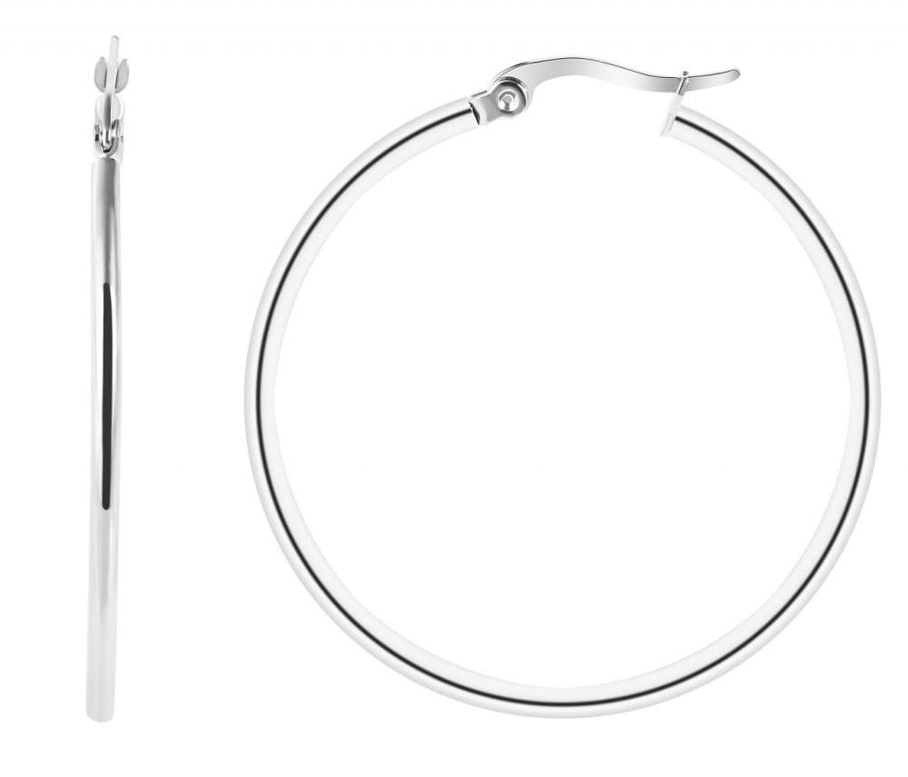 Os brincos de argola da marca Akzent são feitos de aço inoxidável e são prateados. O material é à prova de ferrugem e garante uma longa vida útil. Com o design minimalista, as curvas e o aspecto brilhante da superfície, os brincos chamam muita atenção. Os brincos de argola são absolutamente indispensáveis e podem ser combinados em todas as ocasiões. Os brincos podem ser presos ao orifício da orelha com um fecho dobrável simples. O alfinete é empurrado através de um ilhó aberto e fechado. Os brincos de argola estão disponíveis em diversos tamanhos e têm espessura de 2 mm.