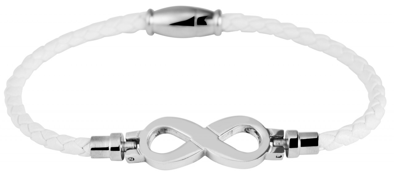 A pulseira trançada da marca Akzent tem um comprimento total de 18 cm e pode ser aberta e fechada com fecho magnético. A característica especial desta pulseira é um símbolo do infinito, que está incorporado no meio da pulseira. É feito em aço inoxidável e ligeiramente curvo. O comprimento total do pendente em aço inoxidável é de 28 mm. Também tem 10 mm de largura e uma espessura de material de 2 mm. Um sinal de infinito é um sinal de conexão estreita e amor sem fim. É um excelente presente. A joia é simples, mas tem uma afirmação convincente. A pulseira está disponível em cores diferentes e em duas cores diferentes de aço inoxidável.