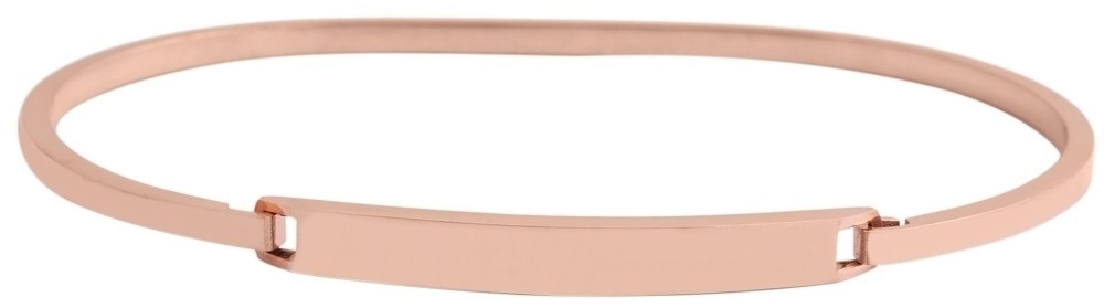 A pulseira de destaque é feita de aço inoxidável. A cor da pulseira é dourado rosa. A pulseira tem 21 cm de comprimento. Sem fecho o comprimento total é de 21 cm. A largura é de 4mm.