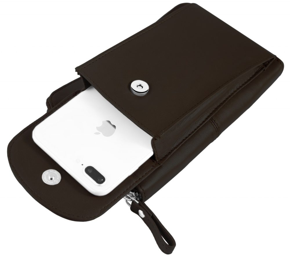 A bolsa de ombro para celular com carteira da marca Praktik é confeccionada em couro genuíno. É ideal para muitas atividades de lazer e pode substituir o incômodo de carregar uma bolsa grande. Ele oferece espaço de armazenamento suficiente para armazenar tudo o que é importante com clareza e também é adequado para celulares grandes, como o iPhone 12 Pro. Possui 6 compartimentos para cartões de crédito, 2 compartimentos para notas e 1 compartimento com zíper para pequenos trocos. A carteira pode ser aberta e fechada com zíper na área externa. O bolso do telemóvel pode ser facilmente aberto e fechado separadamente através de um botão.…