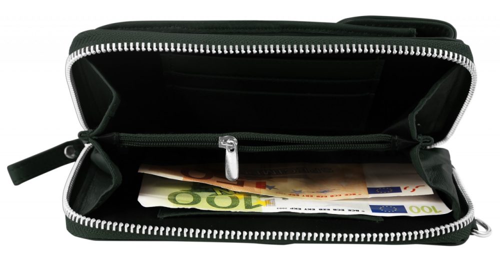 A bolsa de ombro para celular com carteira da marca Praktik é confeccionada em couro genuíno. É ideal para muitas atividades de lazer e pode substituir o incômodo de carregar uma bolsa grande. Ele oferece espaço de armazenamento suficiente para armazenar tudo o que é importante com clareza e também é adequado para celulares grandes, como o iPhone 12 Pro. Possui 6 compartimentos para cartões de crédito, 2 compartimentos para notas e 1 compartimento com zíper para pequenos trocos. A carteira pode ser aberta e fechada com zíper na área externa. O bolso do telemóvel pode ser facilmente aberto e fechado separadamente através de um botão.…