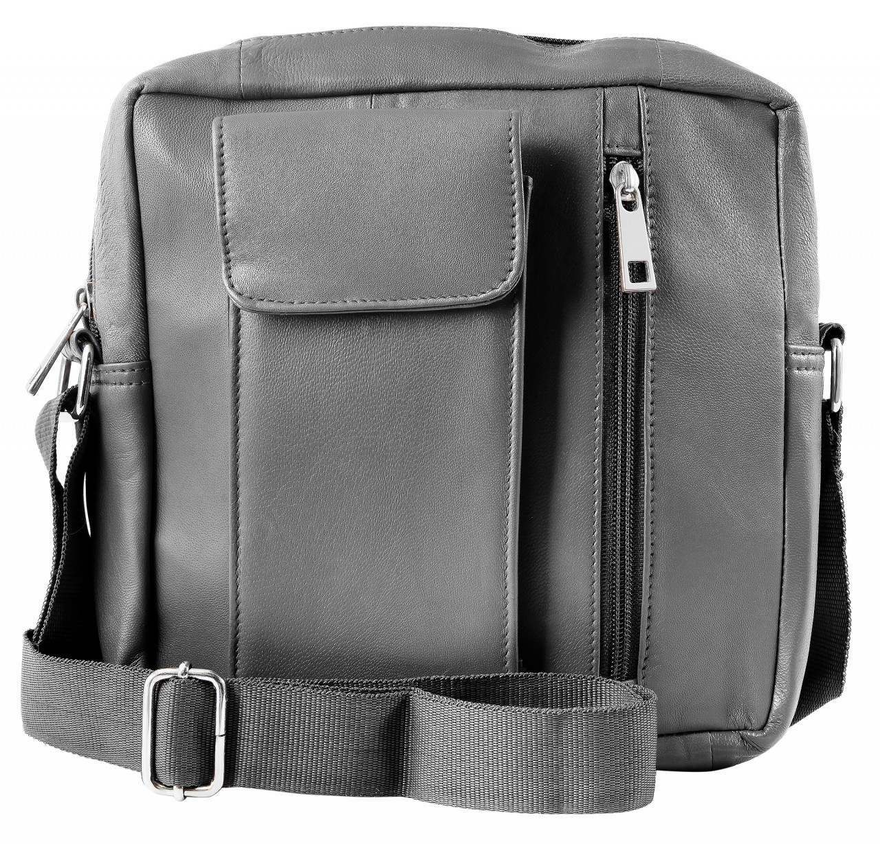 A bolsa tiracolo da marca Praktik é confeccionada em couro genuíno e possui superfície lisa. Possui também uma alça de transporte em nylon com 3 cm de largura que pode ser ajustada para um comprimento máximo de aproximadamente 130 cm. Os dois compartimentos externos, bem como o compartimento principal interno, podem ser operados com fecho. A bolsa também possui compartimento para celular com fecho de botão de pressão na parte externa, adequado para celulares até o tamanho do iPhone 15. A bolsa estilosa é versátil e atemporal e pode ser usada em muitas ocasiões. A opção de guardar todos os itens importantes também impressiona. Seja para um passeio, compras ou uma viagem – com esta bolsa você terá a companhia ideal feita de materiais duráveis.