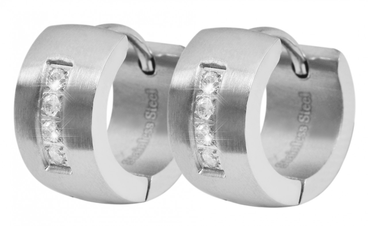 Os brincos de argola da marca Accent são feitos de aço inoxidável e podem ser abertos e fechados com um fecho articulado de aço inoxidável. As dimensões do bastidor dobrável são diâmetro de 10 mm, largura de 7 mm e espessura do material de 2 mm. Um destaque especial nos brincos de argola são as 4 pedras simili incorporadas na frente. Isso torna a joia da moda um atrativo especial.