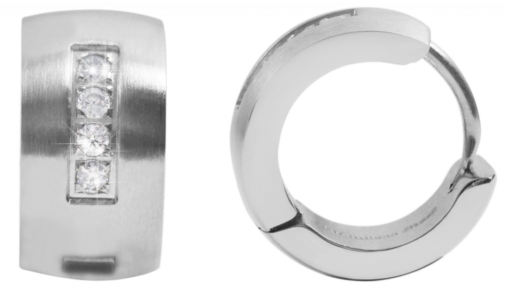 Os brincos de argola da marca Accent são feitos de aço inoxidável e podem ser abertos e fechados com um fecho articulado de aço inoxidável. As dimensões do bastidor dobrável são diâmetro de 10 mm, largura de 7 mm e espessura do material de 2 mm. Um destaque especial nos brincos de argola são as 4 pedras simili incorporadas na frente. Isso torna a joia da moda um atrativo especial.