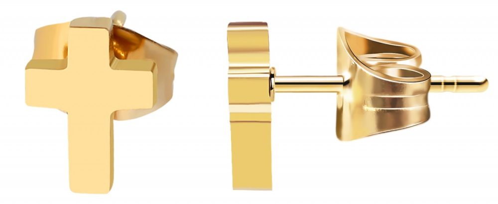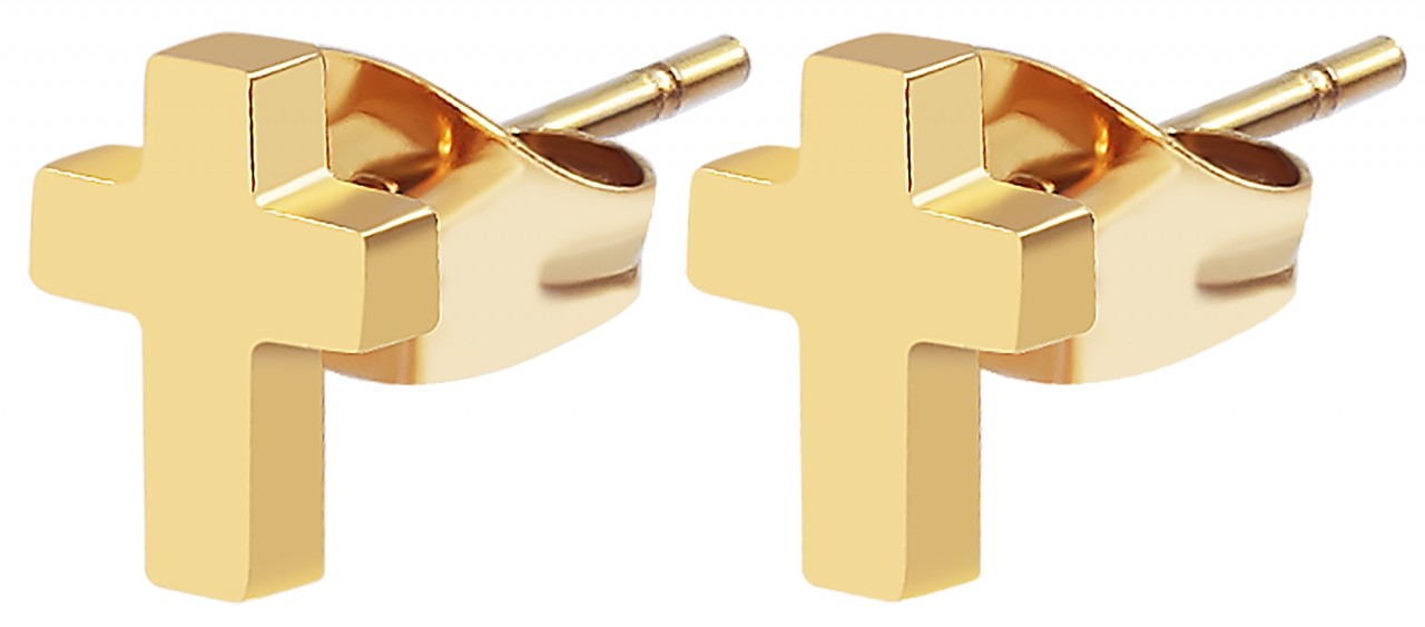 Os brincos da marca Praktik são feitos de aço inoxidável em forma de pequenas cruzes e estão disponíveis em diversas cores. Eles têm um acabamento superficial altamente polido e são parcialmente refinados com revestimento iônico de alta qualidade. As dimensões resultam de um comprimento de 8 mm, largura de 6 mm e espessura do material de 2 mm. Os brincos são fechados com um prático parafuso borboleta, que garante fácil colocação e retirada.