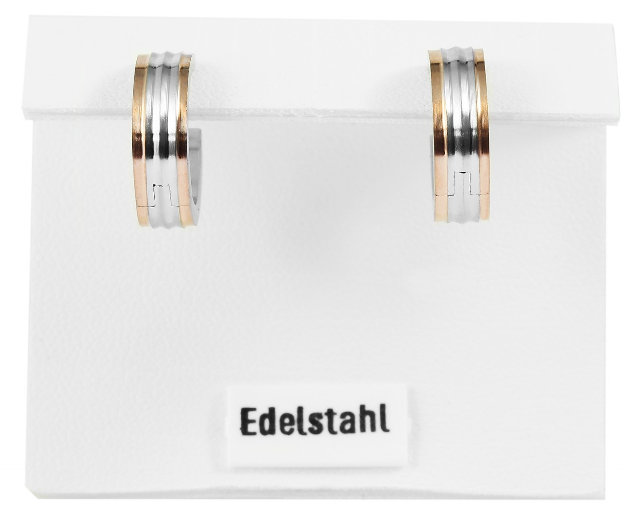 Os brincos de argola dobráveis da marca Praktik são feitos de aço inoxidável e estão disponíveis em diversas cores. O material também é refinado com revestimento iônico de alta qualidade. O diâmetro dos brincos de argola é de 12 mm. Têm 5 mm de largura e estão decoradas com pequenos entalhes no meio. O acabamento mate e o design bicolor tornam estes brincos especiais. Pode ser combinado com qualquer estilo de roupa e é sempre um companheiro estiloso para qualquer ocasião. Eles também são ideais como presente. Por exemplo, para aniversários, Dia dos Namorados ou Natal. Este produto é entregue em um cartão decorativo branco.