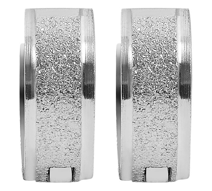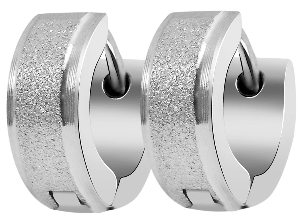 Brincos de argola articulados unissexo em aço inoxidável. O fecho é de dobradiça. O acabamento é em aço inoxidável jato de areia mate e brilhante. O artigo tem as seguintes dimensões: Largura 3,7 mm, diâmetro 10 mm, peso 1,7 gramas.