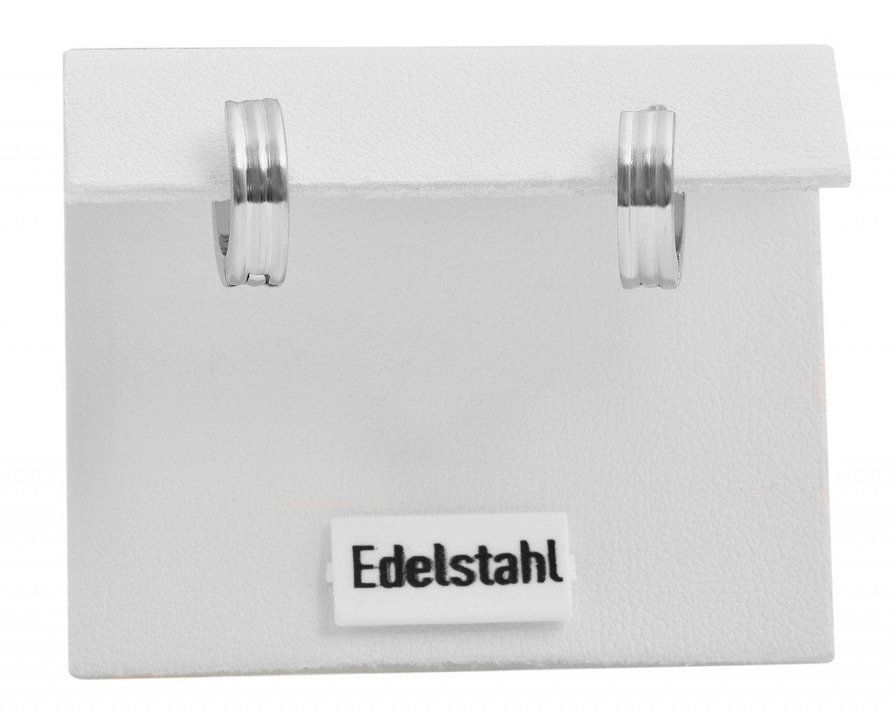 Os brincos de argola com dobradiças da marca Akzent são fabricados em aço inoxidável e são prateados. Têm um diâmetro de 9 mm, uma largura de 4 mm e uma espessura de material de 2 mm. O acabamento da superfície é mate e apresenta duas ranhuras centradas à volta do brinco. São fechados com um fecho articulado prático, fácil de utilizar e que garante uma fixação segura no orifício da orelha. Ofereça estas jóias especiais para as orelhas como presente a alguém especial ou mime-se a si própria. Quer seja para uso diário ou para uma ocasião de negócios, os brincos de argola podem ser usados em qualquer ocasião. Este produto é fornecido num cartão de joalharia branco. Mede 5,5 x 3,5 cm e é ideal para apresentar num expositor adequado ou para embrulhar como presente.