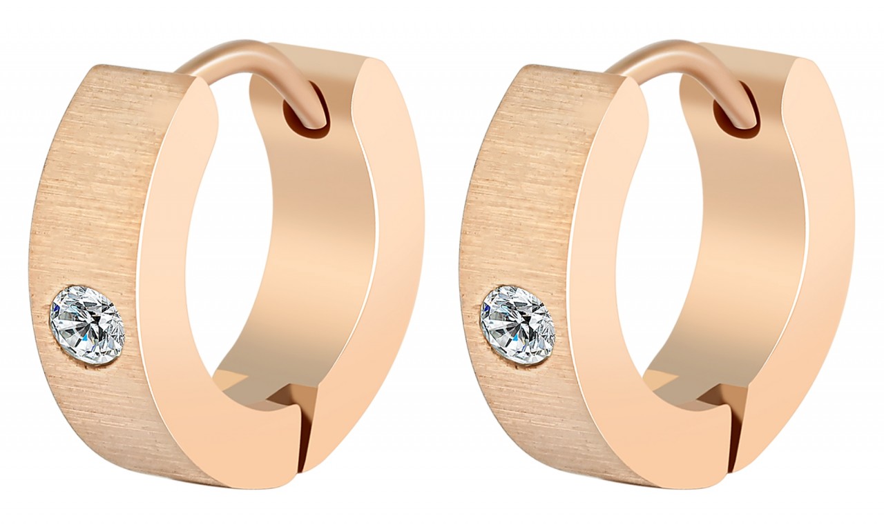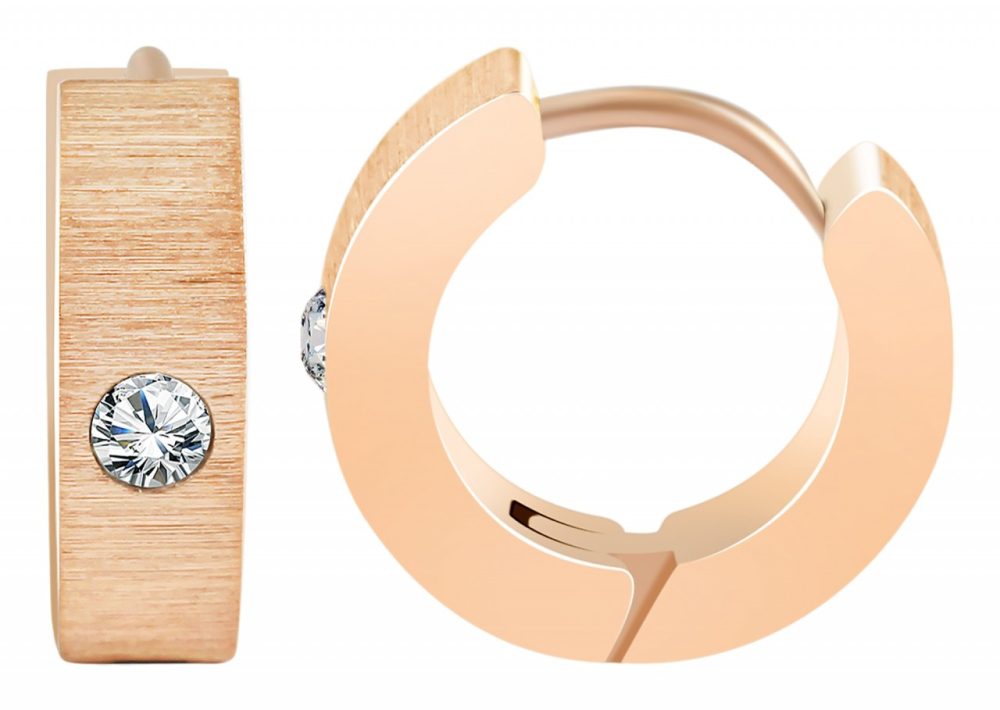 Os brincos de argola dobráveis da marca Praktik são feitos de aço inoxidável e estão disponíveis em diversas cores. Têm um diâmetro de 9 mm, uma largura de 4 mm e uma espessura de material de 2 mm. O visual dos brincos de argola é escovado, para que o material fique fosco e levemente áspero. As bordas externas polidas e a pedra Simili que adornam a frente dos brincos garantem o brilho certo. Eles são fechados com um prático fecho dobrável que pode ser operado facilmente e garante uma fixação segura no orifício da orelha.