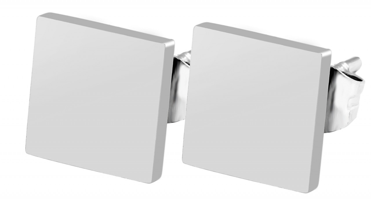 Brincos de realce em aço inoxidável. O fecho é de pressão. O acabamento é em aço inoxidável brilhante. O artigo tem as seguintes dimensões: Largura 8 mm, altura 8 mm, peso 1,6 g