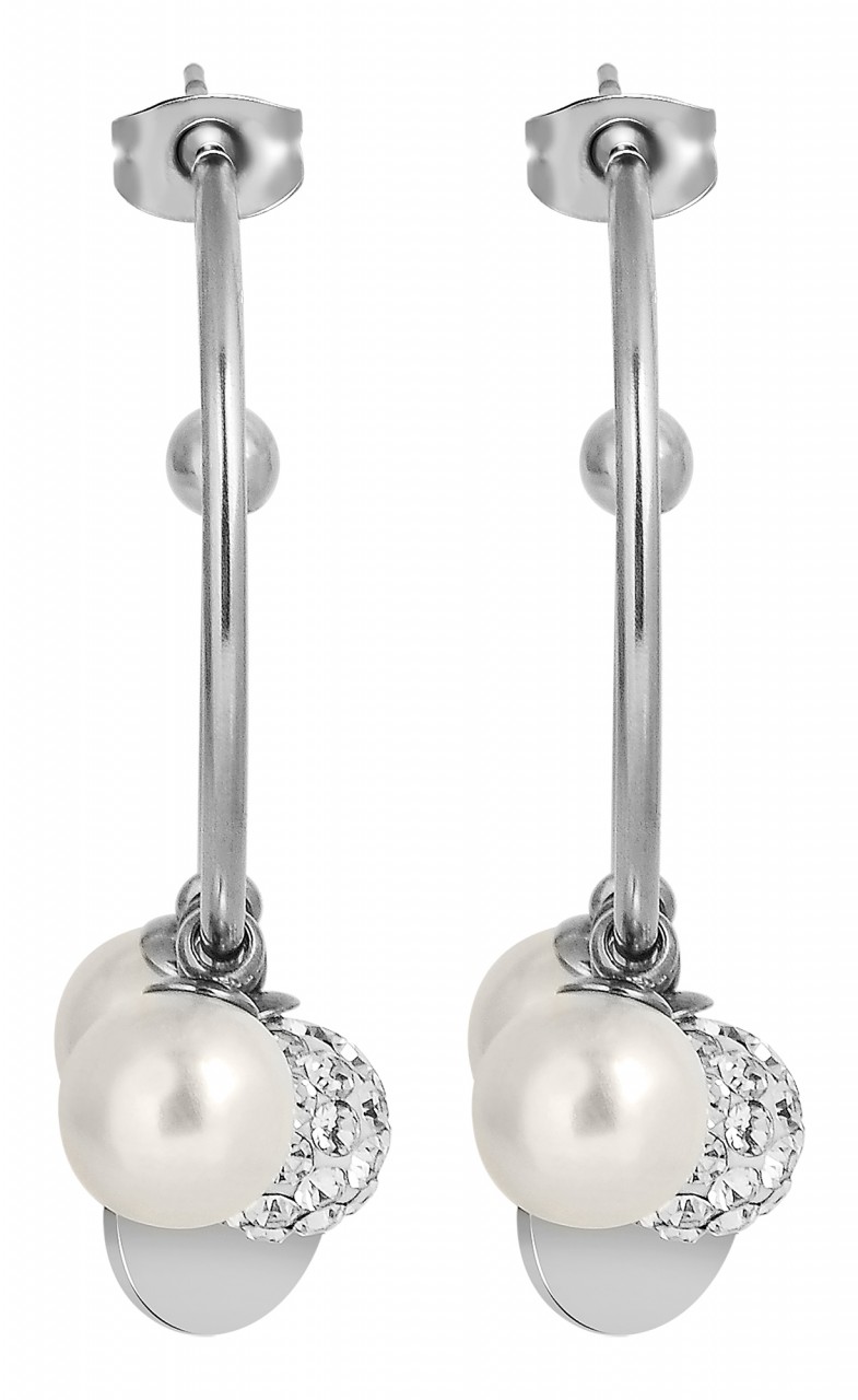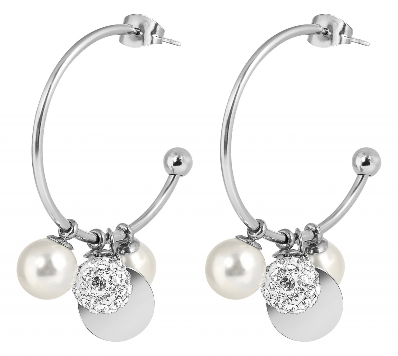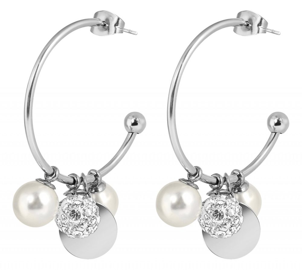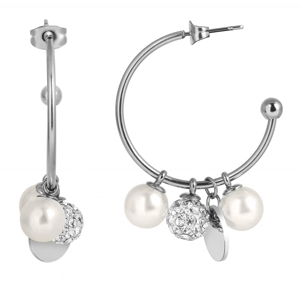 Os brincos de argola semicirculares da marca Akzent são feitos de aço inoxidável e estão disponíveis em diversas cores. Têm um diâmetro de 25 mm e uma espessura de material de 1,5 mm. Duas pérolas artificiais, uma placa de aço inoxidável e um conjunto de bolas com pedras simil estão presas aos brincos de argola. Eles podem ser removidos conforme desejado, removendo o parafuso borboleta, o que garante uma fixação segura no orifício da orelha. Além disso, a pequena placa - com diâmetro de 10 mm - pode ser fornecida com delicadas gravuras. Resumindo, estes brincos são uma joia muito especial que pode ser desenhada individualmente e, portanto, se adapta a cada roupa e a cada ocasião.