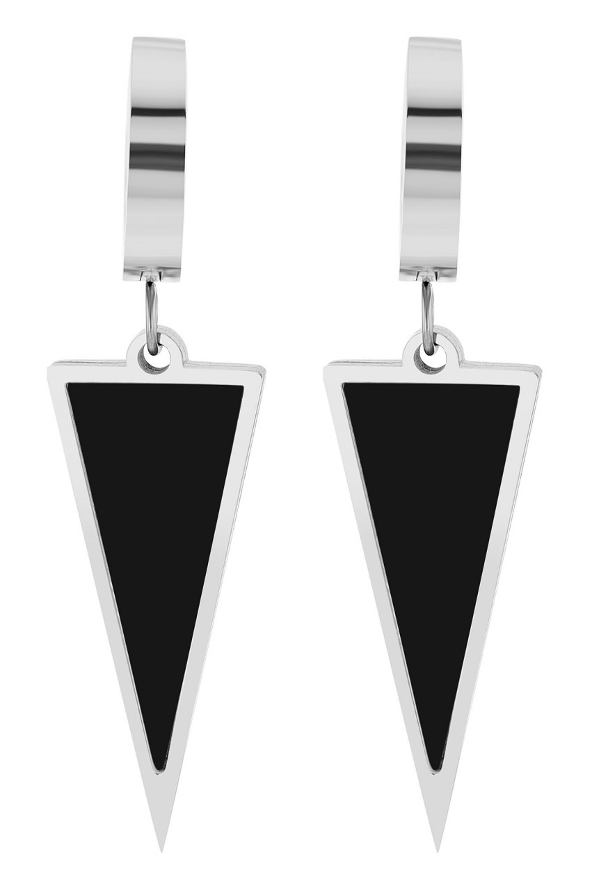 Os brincos de argola da marca Accent são feitos de aço inoxidável, material conhecido por sua durabilidade e durabilidade. Com diâmetro interno de 9 mm e largura de 3 mm, esses brincos de argola proporcionam uma moldura sutil para a orelha. A particularidade destes brincos de argola pode ser vista na parte inferior, onde é fixado um delicado ilhó. Um pingente em forma de triângulo está pendurado neste ilhó. O pingente mede 29 mm de comprimento, 11 mm de largura e tem espessura de material de 2 mm. O pingente é decorado com um triângulo de acrílico preto. Os brincos de argola estão disponíveis em prata e ouro. Com seu design moderno, esses brincos não devem faltar em nenhuma coleção de joias.