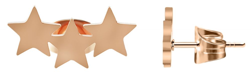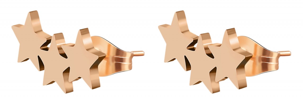 Os brincos da marca Praktik são feitos de aço inoxidável e estão disponíveis em diversas cores. O material revela-se particularmente robusto, durável e amigo da pele. O desenho dos brincos é composto por três estrelas amarradas entre si, que possuem acabamento brilhante. Têm comprimento de 19 mm, largura de 6 mm e espessura de 1 mm. Os brincos podem ser presos ao orifício da orelha com um parafuso borboleta. A porca de conforto incluída com placa de silicone fornece suporte adicional. Entregues em cartão-joia de 45 x 35 mm, os brincos são ideais para apresentar no expositor designado ou para presentear uma pessoa especial.