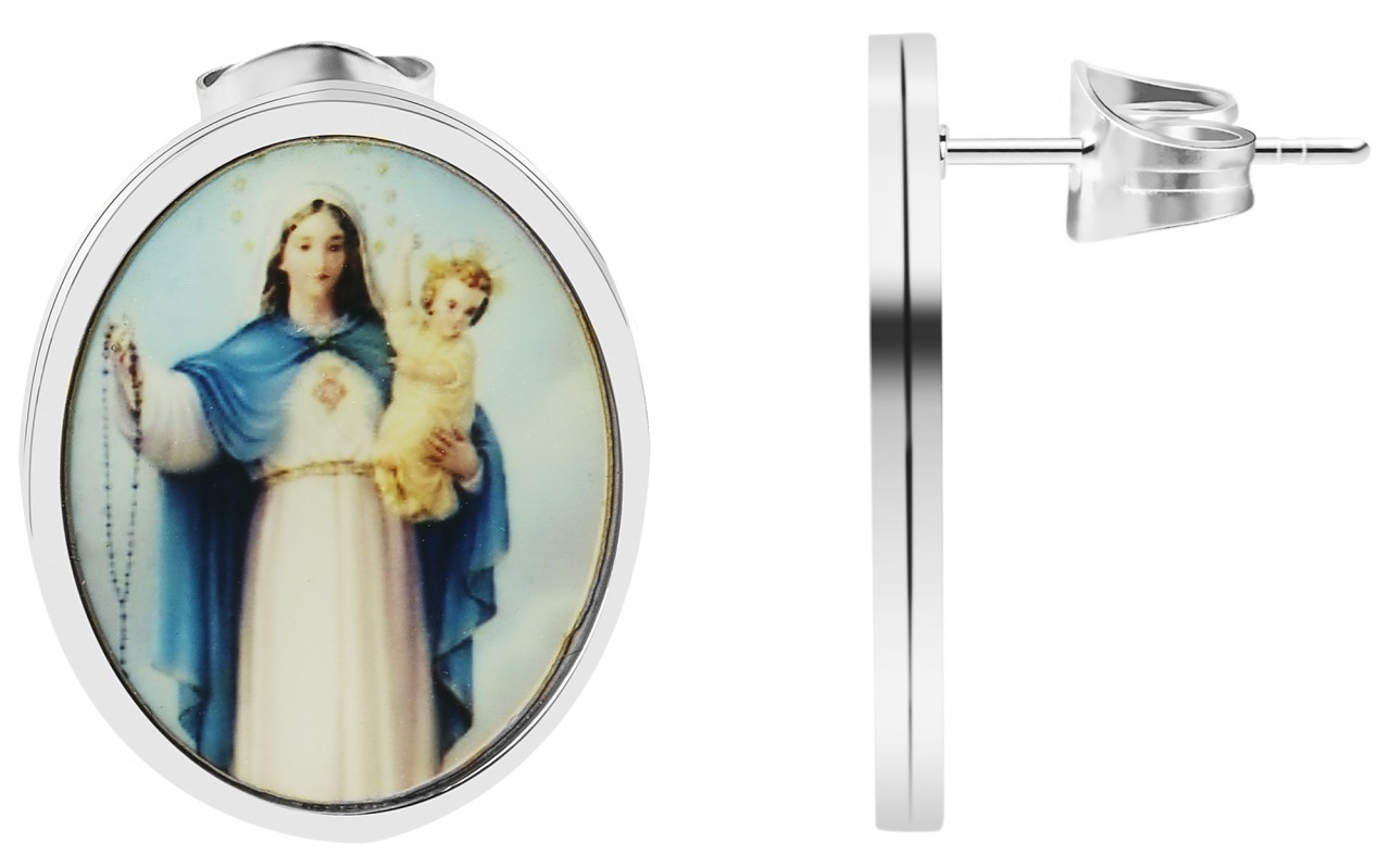 Descubra nossos brincos exclusivos feitos de aço inoxidável de alta qualidade. Estes brincos especiais caracterizam-se pelo seu formato oval e pelo desenho especial com a imagem de Maria de Deus. A representação de Maria é um destaque especial que a distingue das demais peças de joalheria. Estes brincos podem, portanto, ter um significado mais profundo e ser um símbolo de fé, esperança e amor. O material é escolhido de forma adequada porque está associado à estabilidade e imperecibilidade devido à sua durabilidade e longevidade.