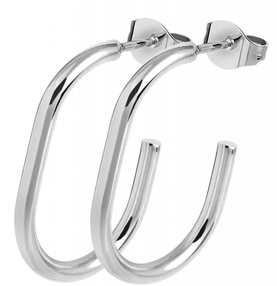 Os brincos femininos são feitos de aço inoxidável e estão disponíveis em diversas cores. A superfície dos brincos é altamente polida. Os brincos podem ser presos à orelha com um fecho de pressão. As dimensões resultam de um comprimento de 2,4 cm, uma largura de 1,7 cm e uma espessura de material de 2 mm.