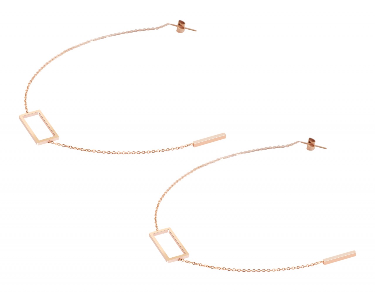 Akzent® Brincos Rose Gold com Corrente em Aço Inoxidável - 0011