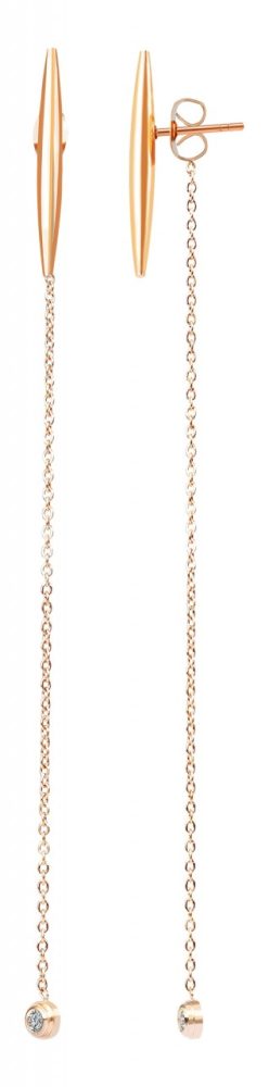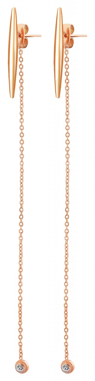 Brinco com detalhes em aço inoxidável. O fechamento é um fechamento plug-in. A textura é mostrada em aço inoxidável brilhante. O item tem as seguintes dimensões: comprimento: 15 cm, largura: 0,2 cm e espessura: 0,2 cm.