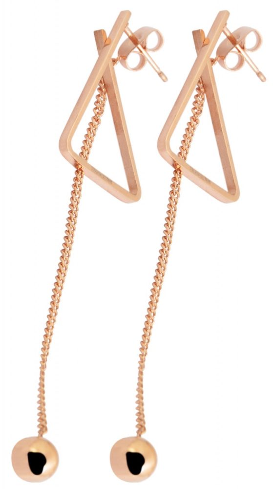 Brinco com detalhes em aço inoxidável. O fechamento é um fechamento plug-in. A textura é mostrada em aço inoxidável fosco e brilhante. O item possui as seguintes dimensões: comprimento: 8,8 cm, largura: 1,6 cm e espessura: 0,2 cm.