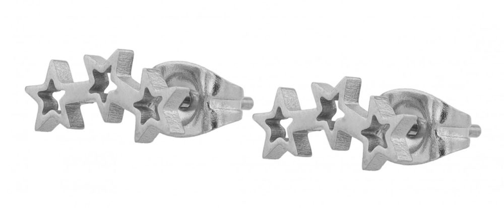 Nossos brincos de estrela em aço inoxidável consistem em uma série de três estrelas finamente trabalhadas, que juntas formam uma unidade harmoniosa e estética. Feitos com um material de alta qualidade conhecido pela resistência e corrosão, esses brincos serão companheiros duradouros que dão um toque de brilho ao dia a dia. Cada brinco tem 5 x 11 mm – o que o torna extremamente delicado, mas atraente o suficiente para atrair a atenção. Os parafusos borboleta que servem de fechamento não só permitem um fácil manuseio, mas também um ajuste seguro e confortável na orelha.