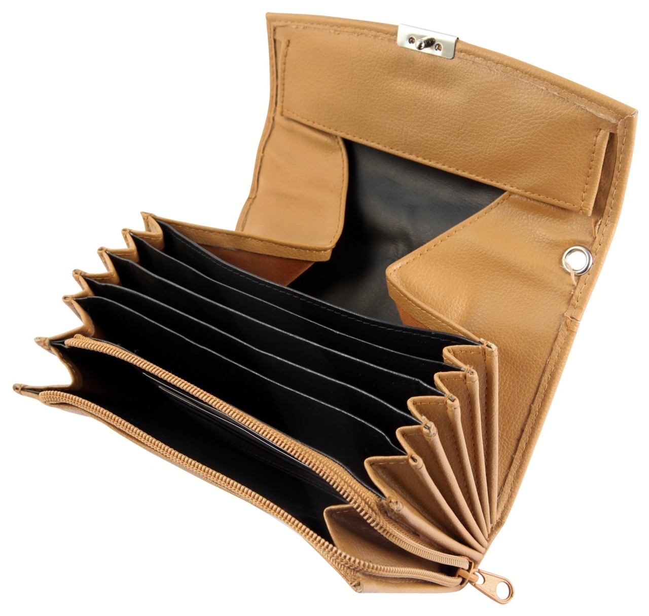A carteira de garçom em formato paisagem da marca Praktik é confeccionada em imitação de couro macio. É ideal para áreas gastronómicas e outras. O sólido acabamento das costuras garante longa durabilidade. A carteira do garçom economiza muito espaço e possui um compartimento para moedas muito grande para uso diário no trabalho. Possui também 5 compartimentos para notas, 1 compartimento com zíper com 3 compartimentos transparentes para cartão de crédito incluídos e 1 bolso na parte de trás da carteira. A carteira é fechada com fecho de pressão. Pode ser aberto novamente com um simples movimento de alavanca. O tamanho resulta de um comprimento de 17,5 cm, largura de 10,3 cm e espessura de 4,0 cm.