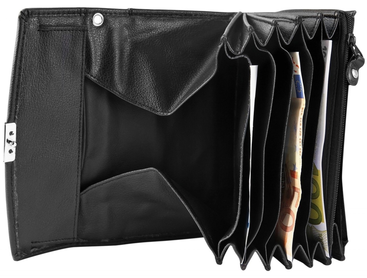 A carteira de garçom em formato paisagem da marca Praktik é confeccionada em couro bovino de alta qualidade. É ideal para áreas gastronómicas e outras. O sólido acabamento das costuras garante longa durabilidade. A carteira do garçom economiza muito espaço e possui um compartimento para moedas muito grande para uso diário no trabalho. Possui também 5 compartimentos para notas, um compartimento com zíper com 3 compartimentos transparentes para cartão de crédito incluídos e 1 bolso na parte de trás da carteira. A carteira é fechada com fecho de pressão. Pode ser aberto novamente com um simples movimento de alavanca. O tamanho tem 17,5 cm de comprimento, 10,3 cm de largura e 3,5 cm de espessura.