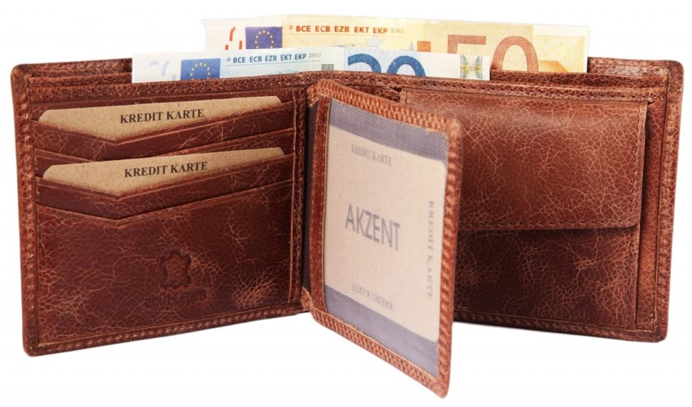 A carteira masculina da marca Praktik foi confeccionada em formato paisagem em couro genuíno. Possui superfície lisa e efeito usado. A costura dupla por fora e por dentro garante boa durabilidade e estabilidade. A carteira não é apenas um atrativo visual, mas também um verdadeiro milagre de espaço e oferece muito espaço de armazenamento para todos os documentos importantes. É dividido em 6 compartimentos para cartões de crédito, 2 bolsos deslizantes, 2 compartimentos para notas e 1 compartimento para moedas com fecho de botão de pressão. Graças à proteção RFID integrada, todos os cartões com chip estão protegidos contra ataques fraudulentos. O tamanho da bolsa é de 11 cm de largura, 9 cm de comprimento e 2 cm de espessura.