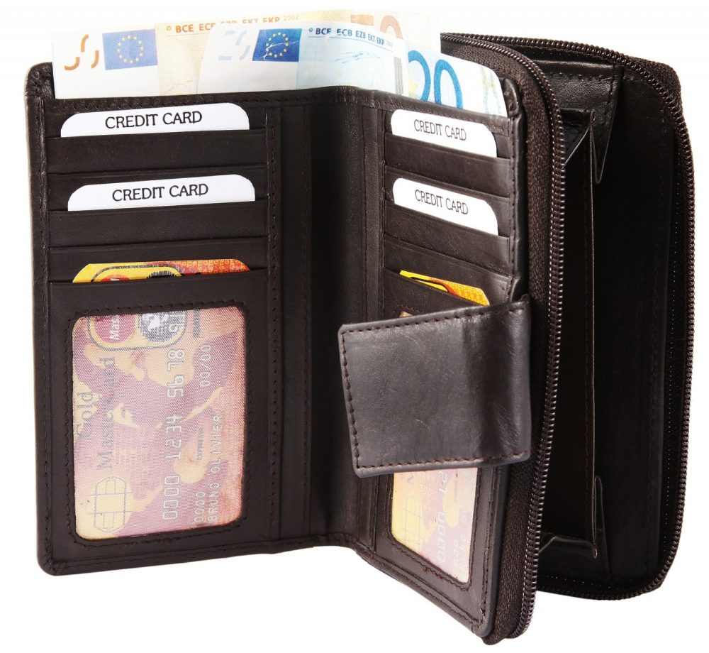 A carteira feminina em formato retrato da marca Praktik é confeccionada em couro bovino genuíno. O forro interno é feito principalmente de couro, parte dele é feito de tecido. A costura externa e interna da carteira garante boa durabilidade e estabilidade. A carteira não é apenas um atrativo visual, mas também um verdadeiro milagre de espaço e oferece muito espaço de armazenamento para todos os documentos importantes. A carteira está dividida em 10 compartimentos para cartões de crédito, 1 compartimento para notas, 4 bolsos deslizantes e 1 compartimento para moedas com fecho de correr no exterior. A carteira é fechada com um prático fecho de pressão na parte externa e um zíper no compartimento para moedas. O tamanho não preenchido tem 10,3 cm de comprimento, 16,5 cm de largura e 3,3 cm de espessura.