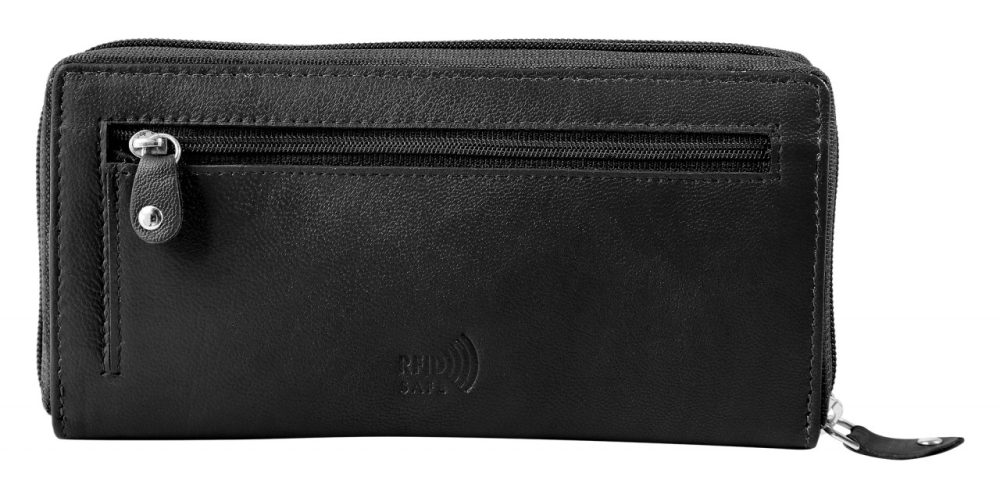 A carteira feminina da marca Praktik é confeccionada em formato paisagem em pele de cabra genuína e possui superfície lisa. A costura externa e interna da carteira garante boa durabilidade e estabilidade. A carteira é um verdadeiro milagre de espaço e oferece muito espaço de armazenamento para todos os documentos importantes. A carteira está dividida em 8 compartimentos para cartões de crédito, 4 compartimentos para notas, 1 compartimento para moedas, 1 compartimento exterior com fecho e 2 bolsos deslizantes. A carteira é fechada com zíper, para que o conteúdo fique bem guardado e seguro. O tamanho, sem preenchimento, tem 9,7 cm de comprimento, 19,3 cm de largura e 3,0 cm de espessura. Graças à proteção RFID integrada, todos os cartões com chip estão protegidos contra ataques fraudulentos.