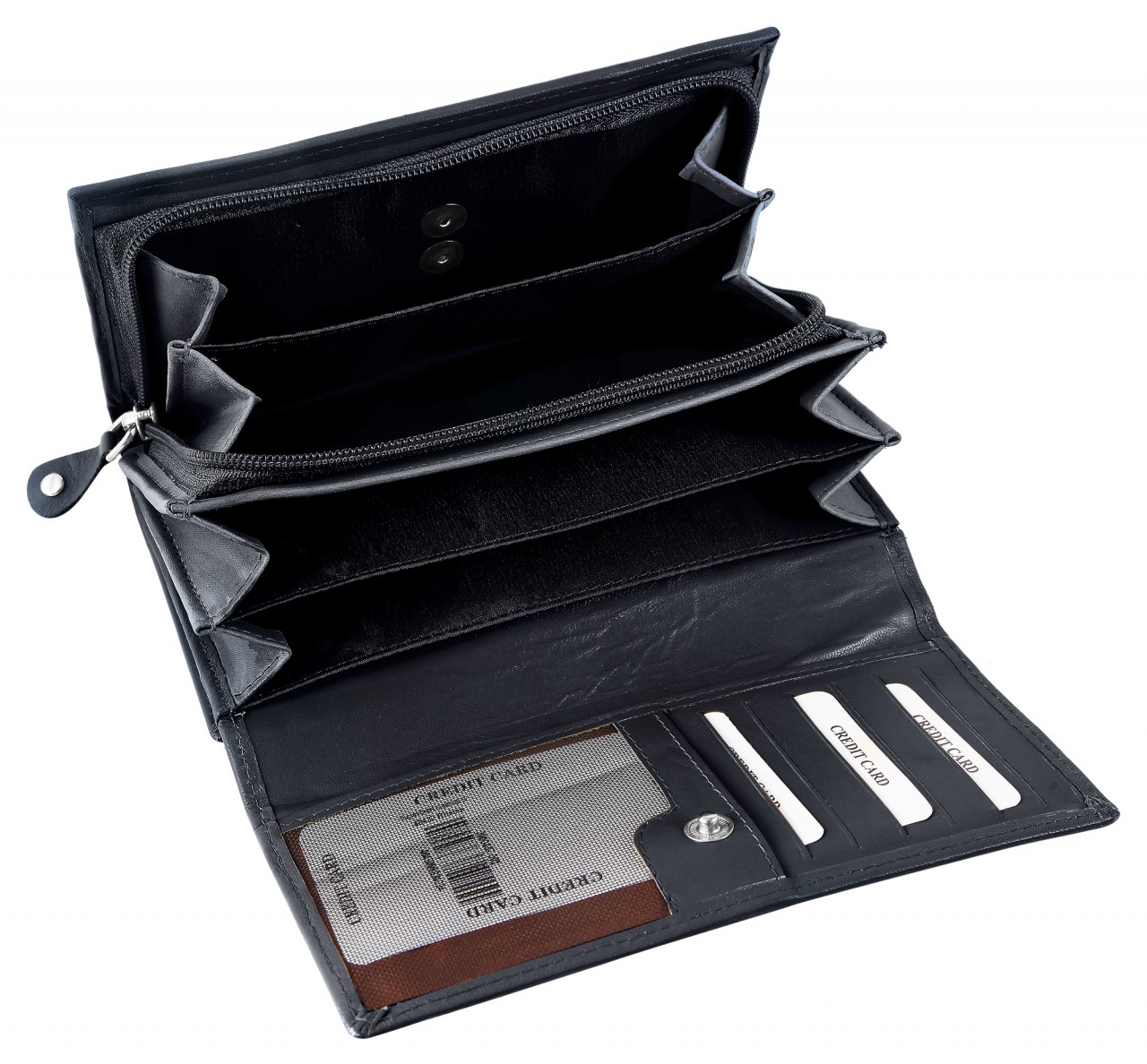 A carteira feminina da marca Praktik é confeccionada em formato paisagem em pele de cabra genuína e possui superfície lisa. A costura externa e interna da carteira garante boa durabilidade e estabilidade. A carteira é um verdadeiro milagre de espaço e oferece muito espaço de armazenamento para todos os documentos importantes. A carteira está dividida em 19 compartimentos para cartões de crédito, 2 compartimentos para notas, 2 compartimentos para moedas, 2 compartimentos transparentes para identificação e 4 bolsos deslizantes. A carteira fecha com um prático fecho de pressão no exterior, o compartimento para moedas fecha com fecho. O tamanho não preenchido tem 10,1 cm de comprimento, 17,2 cm de largura e 4,2 cm de espessura. Graças à proteção RFID integrada, todos os cartões com chip estão protegidos contra ataques fraudulentos.