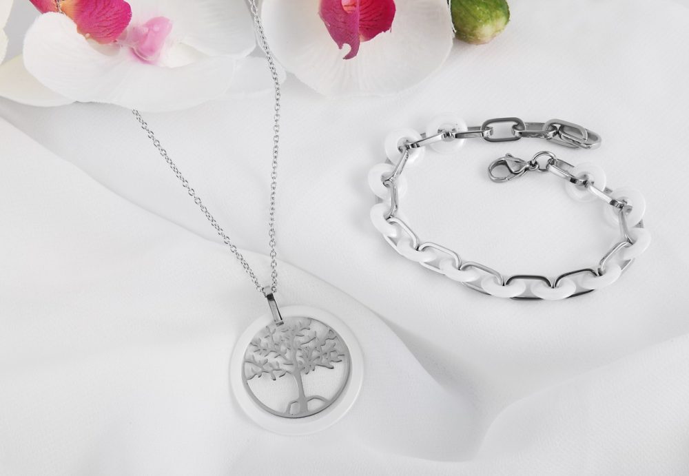O colar feminino da marca Akzent é feito de aço inoxidável de alta qualidade. As dimensões da corrente são 43 cm de comprimento e 1 mm de espessura. Além disso, uma corrente extensora de 5 cm de comprimento é fixada na corrente, o que permite variar o comprimento em até 5 cm e adaptar esta joia especial a qualquer look. O colar tem um pingente redondo com uma árvore da vida. Isto é feito de cerâmica. As dimensões do pingente são 31 mm de diâmetro e 3 mm de espessura. A corrente pode ser aberta e fechada com fecho lagosta de aço inoxidável.