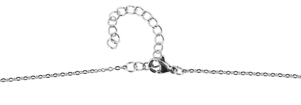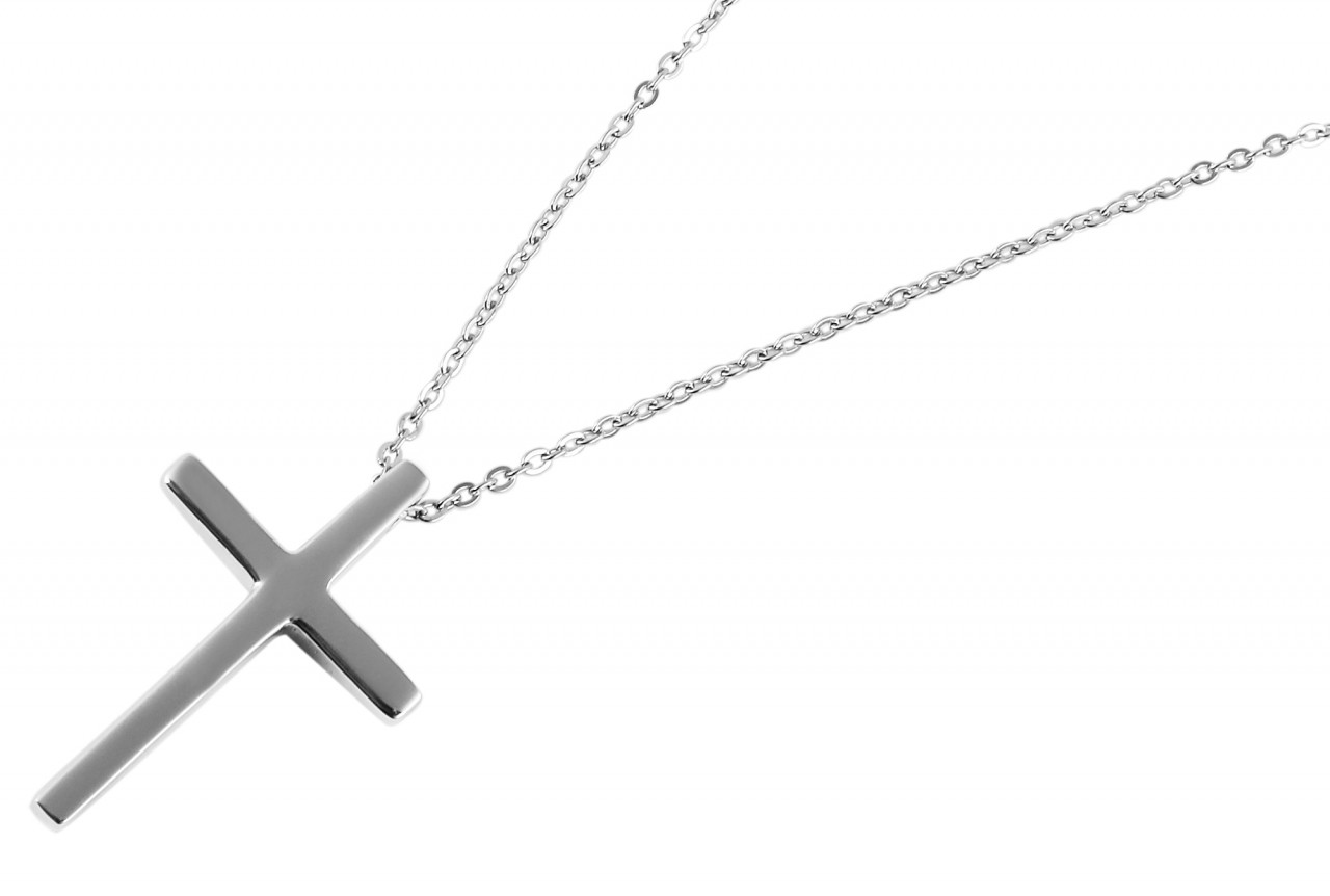 A corrente de aço inoxidável da marca Praktik é confeccionada em padrão âncora e decorada com pingente de cruz. A corrente pode ser aberta e fechada com um fecho mosquetão, também feito de aço inoxidável. As dimensões da corrente são comprimento de 43 cm, largura de 1 mm e espessura de 1 mm. Além disso, em uma das pontas da corrente é fixada uma corrente extensora de 5 cm de comprimento, o que permite variar o comprimento em até 5 cm e adaptar a joia a qualquer look. O pingente é fosco e tem 3 cm de comprimento, 2 cm de largura e 4 mm de espessura.