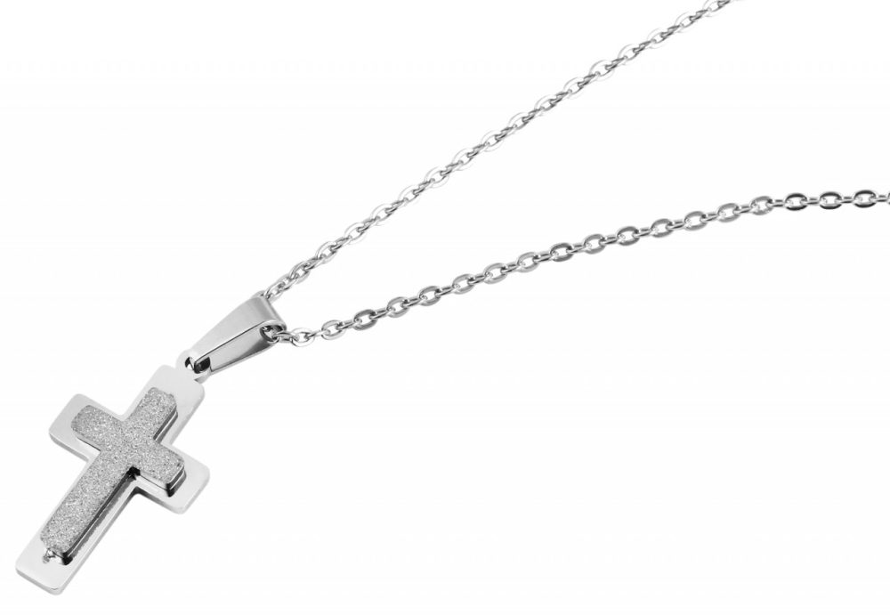 Akzent® Colar Cruz Prateado em Aço Inoxidável - 0156