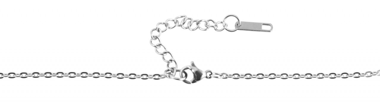 O colar da marca Praktik foi confeccionado em aço inoxidável no padrão âncora. O material é robusto e garante uma longa vida útil. A corrente é presa na nuca por um fecho lagosta de aço inoxidável. O comprimento da corrente é de 45 cm. Uma corrente de extensão de 5 cm de comprimento é presa a uma extremidade da corrente, o que permite variar o comprimento em mais 5 cm. A espessura da corrente é de 1 mm. O colar também possui um pingente de aço inoxidável em forma de cruz. Possui um acabamento superficial altamente polido e jateado. O tamanho do pingente é 30 mm de comprimento, 15 mm de largura e 3 mm de espessura.