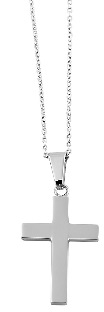 Akzent® Colar Cruz Prateado em Aço Inoxidável - 0083