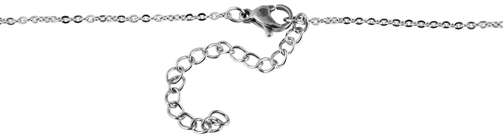 O colar âncora da marca Akzent é feito de aço inoxidável. O material garante uma longa vida útil do colar. A corrente é prateada. A corrente é presa na nuca por um fecho lagosta de aço inoxidável. O comprimento da corrente é de 43 cm. Se necessário, pode ser ampliado em 5 cm para que possa ser ajustado individualmente. A espessura da corrente é de 1 mm. O colar também possui um pingente de aço inoxidável. O plástico foi usado como outro material para o pingente de corrente. O tamanho do pingente resulta da largura de 10 mm e da altura de 25 mm. O pingente é prateado.