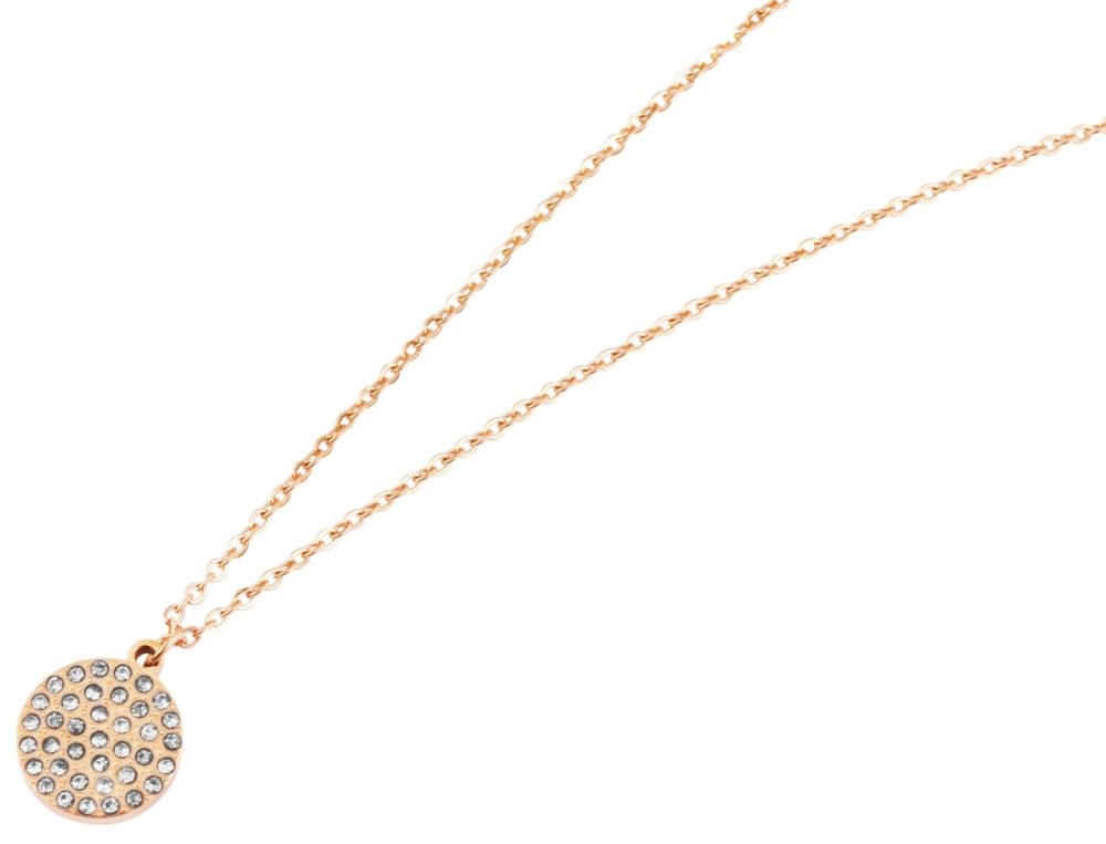 O colar feminino da marca Akzent tem padrão âncora e é feito de aço inoxidável. O pingente circular decorado com pedras simil garante que a joia chame a atenção. As dimensões da corrente são 43 cm de comprimento, 2 mm de largura e 1 mm de espessura. O pingente tem diâmetro de 12 mm e espessura de 2 mm. A corrente pode ser aberta e fechada com fecho lagosta, também feito de aço inoxidável. Tanto a corrente quanto o pingente são altamente polidos e a parte de trás do pingente também pode ser gravada.