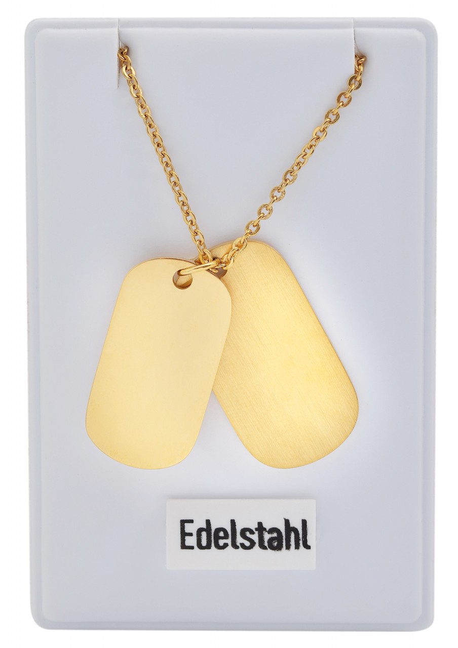 O colar com padrão âncora da marca Praktik é feito de aço inoxidável. Este é fornecido com dois pingentes graváveis, também feitos de aço inoxidável. A corrente tem 45 cm de comprimento e pode ser aberta e fechada com um mosquetão. Além disso, uma corrente extensora de 5 cm de comprimento é fixada na ponta da corrente, o que permite variar o comprimento em até 5 cm e, portanto, pode ser adaptado a qualquer roupa. Os pingentes de gravação têm tamanhos diferentes. O maior tem aspecto mate e tem 27 mm de comprimento, 14 mm de largura e 1 mm de espessura. O pingente de corrente menor se destaca visualmente e tem um visual brilhante. Tem comprimento de 24 mm, largura de 13 mm e espessura de 1 mm. Graças à opção de gravação individual, este colar é uma excelente ideia de presente pessoal.