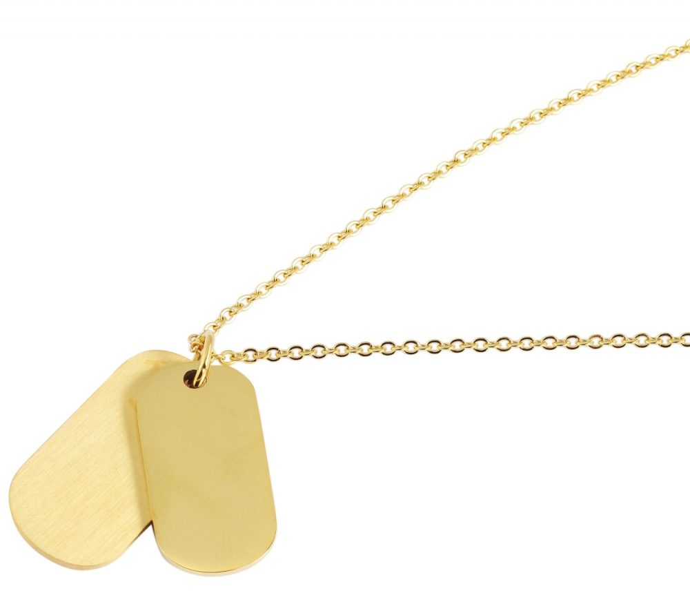 O colar com padrão âncora da marca Praktik é feito de aço inoxidável. Este é fornecido com dois pingentes graváveis, também feitos de aço inoxidável. A corrente tem 45 cm de comprimento e pode ser aberta e fechada com um mosquetão. Além disso, uma corrente extensora de 5 cm de comprimento é fixada na ponta da corrente, o que permite variar o comprimento em até 5 cm e, portanto, pode ser adaptado a qualquer roupa. Os pingentes de gravação têm tamanhos diferentes. O maior tem aspecto mate e tem 27 mm de comprimento, 14 mm de largura e 1 mm de espessura. O pingente de corrente menor se destaca visualmente e tem um visual brilhante. Tem comprimento de 24 mm, largura de 13 mm e espessura de 1 mm. Graças à opção de gravação individual, este colar é uma excelente ideia de presente pessoal.