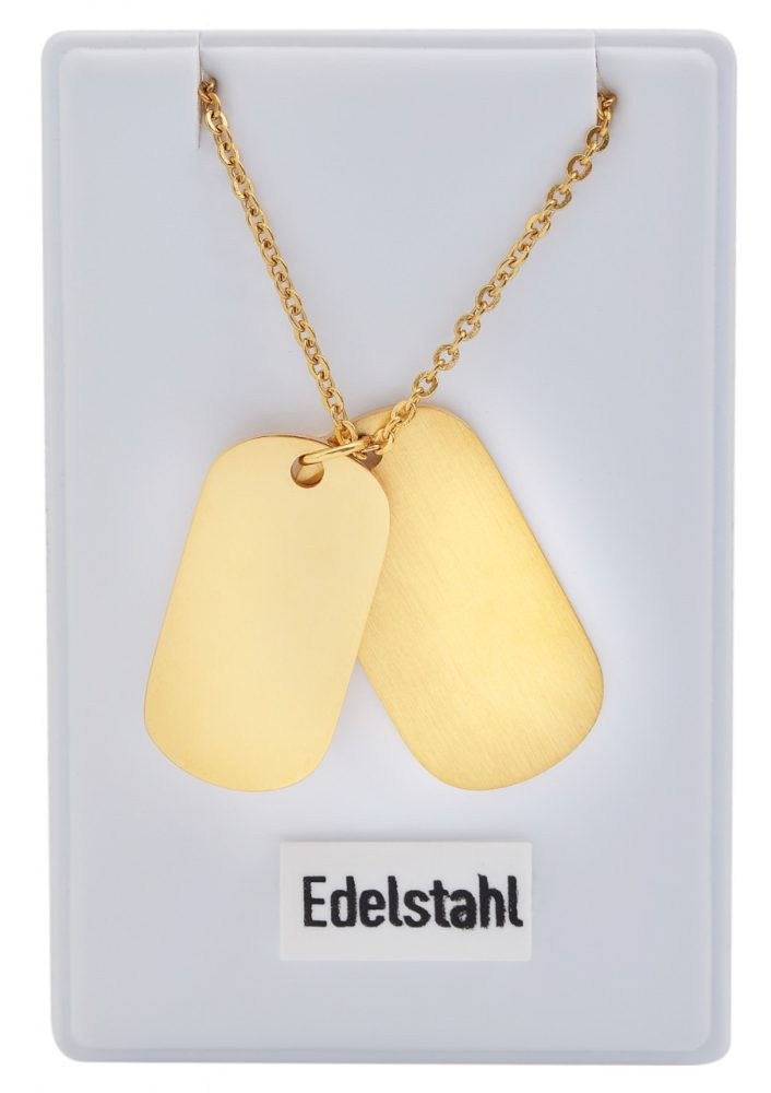 O colar com padrão âncora da marca Praktik é feito de aço inoxidável. Este é fornecido com dois pingentes graváveis, também feitos de aço inoxidável. A corrente tem 45 cm de comprimento e pode ser aberta e fechada com um mosquetão. Além disso, uma corrente extensora de 5 cm de comprimento é fixada na ponta da corrente, o que permite variar o comprimento em até 5 cm e, portanto, pode ser adaptado a qualquer roupa. Os pingentes de gravação têm tamanhos diferentes. O maior tem aspecto mate e tem 27 mm de comprimento, 14 mm de largura e 1 mm de espessura. O pingente de corrente menor se destaca visualmente e tem um visual brilhante. Tem…