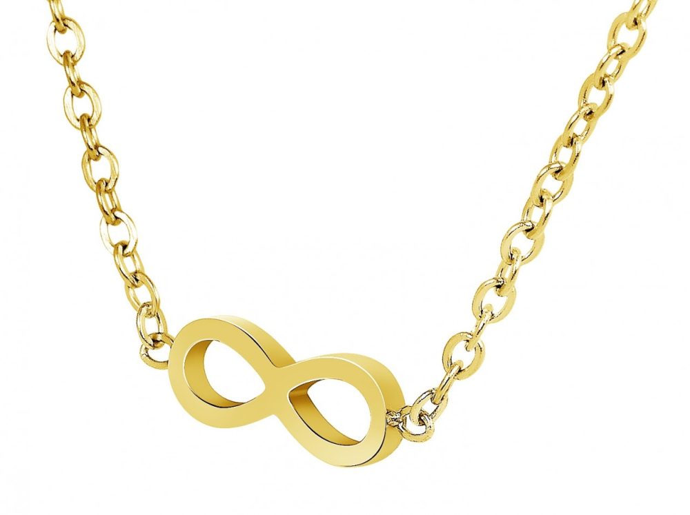 O colar da marca Praktik é feito de aço inoxidável em padrão âncora. Um pingente em forma de símbolo do infinito está preso à corrente. Tem 5 mm de comprimento, 17 mm de largura e 1 mm de espessura. A moderna corrente de joias pode ser aberta e fechada com um mosquetão, que também é feito de aço inoxidável. Além disso, em uma das pontas da corrente é fixada uma corrente extensora de 5 cm de comprimento, que permite variar o comprimento em até 5 cm e, portanto, pode ser adaptada a qualquer roupa. As dimensões resultam de um comprimento de 43 cm e uma espessura de 1 mm.