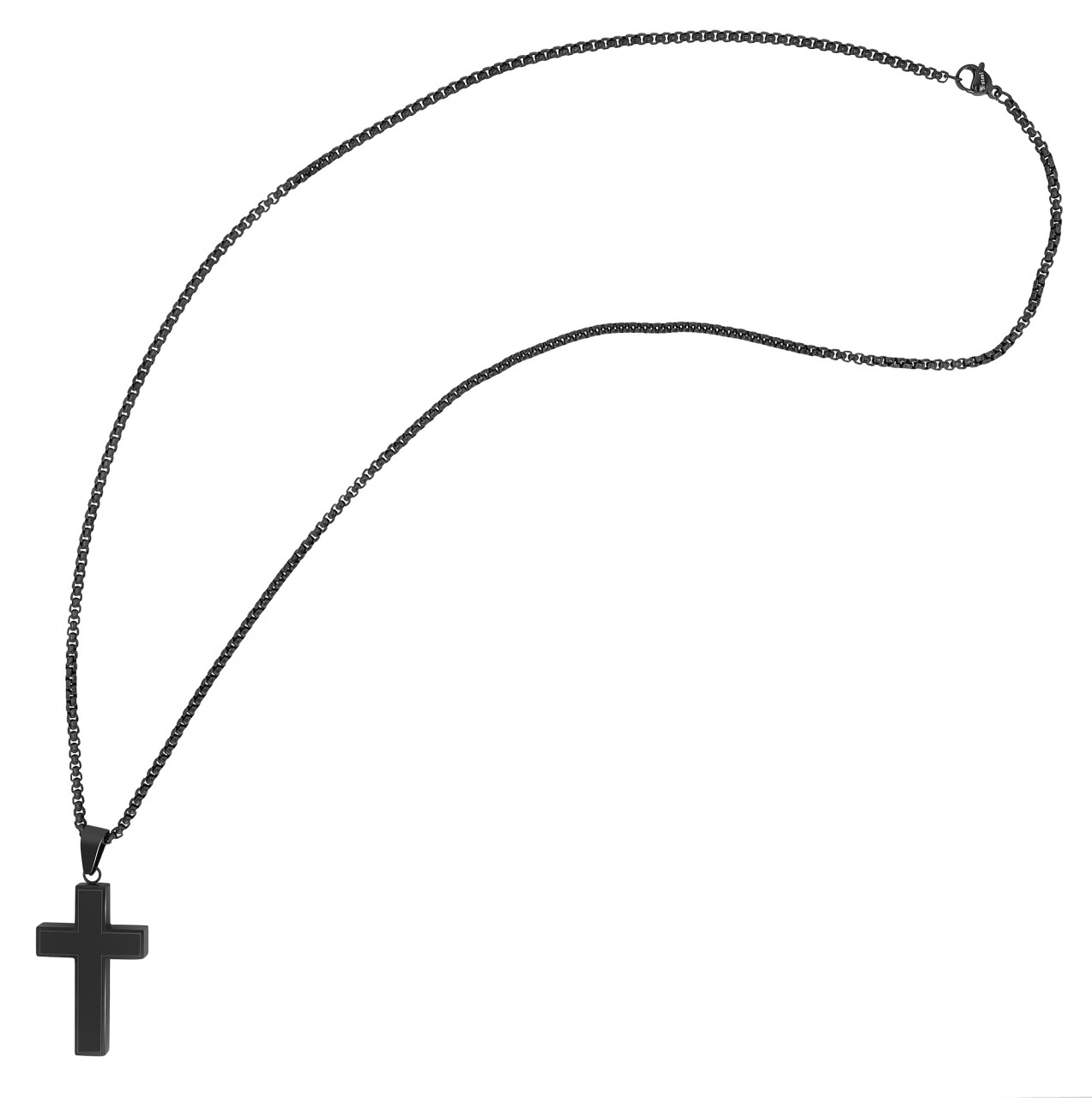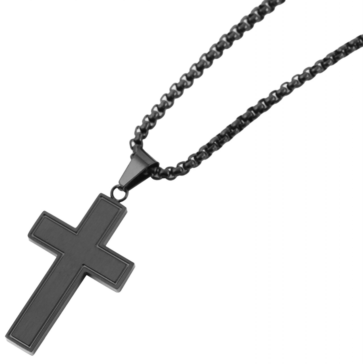 Akzent® Colar Cruz Preto em Aço Inoxidável - 0358