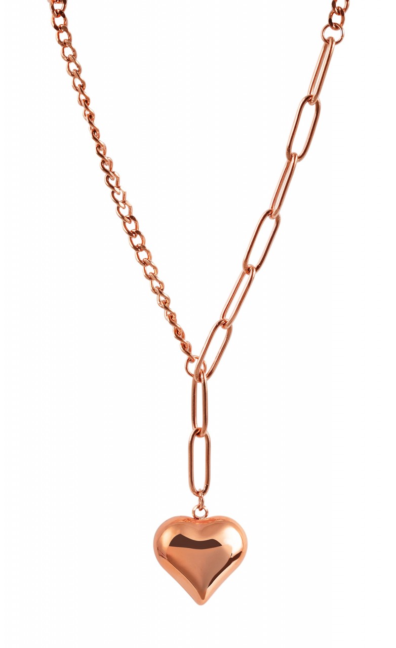 Akzent® Colar Coração Rosa Dourado em Aço Inoxidável - 0382
