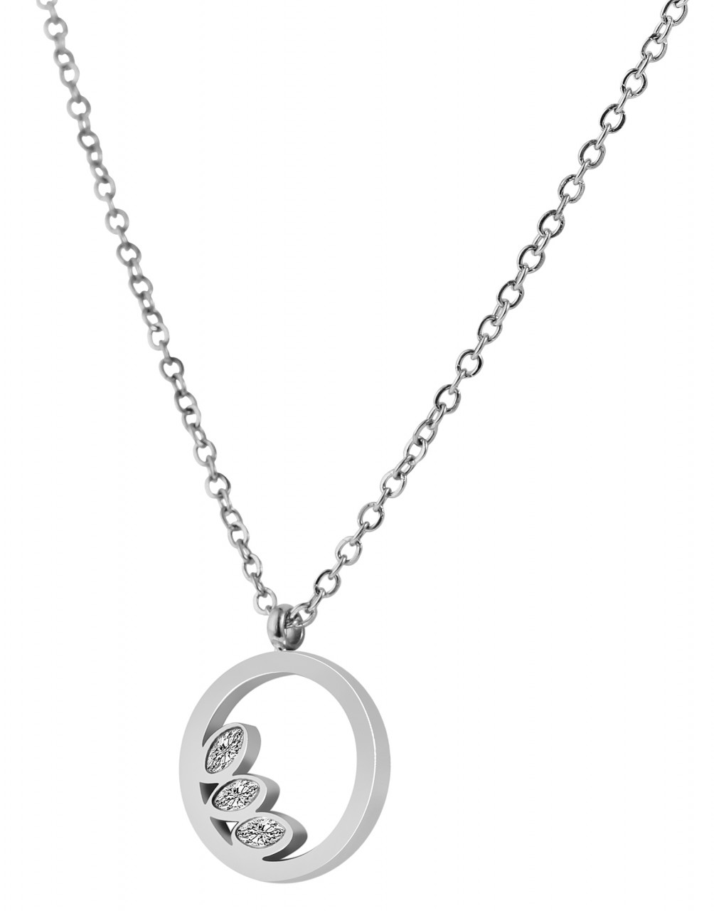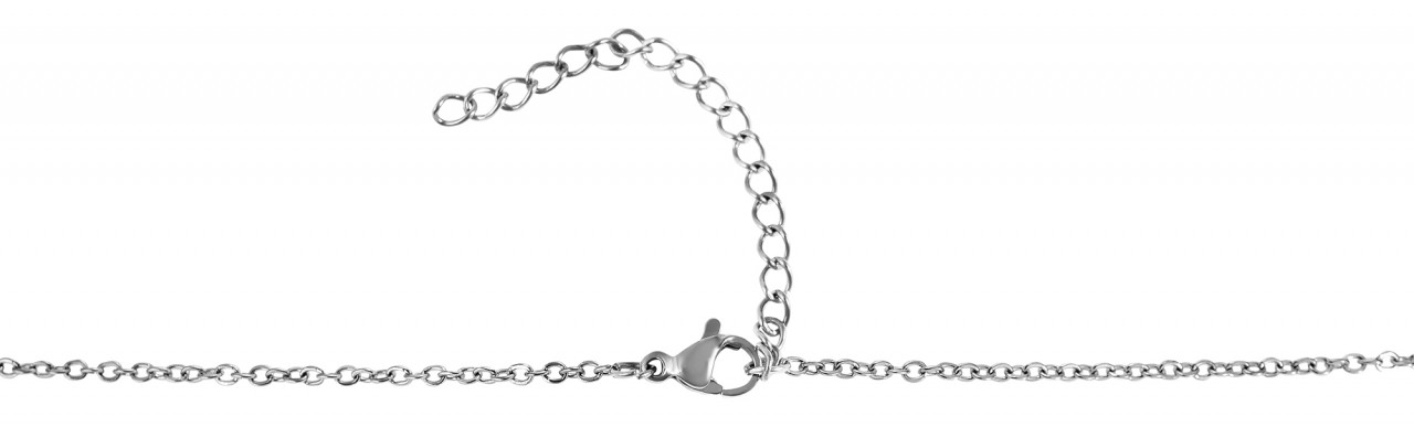 O colar da marca Akzent é feito de aço inoxidável em padrão âncora e está disponível em várias cores. Um pingente redondo está preso à corrente. Também é feito de aço inoxidável e decorado com três pedras simil ovais. O material é muito robusto, durável e ideal para quem sofre de alergias, uma vez que o aço inoxidável é particularmente amigo da pele. Além disso, as joias são parcialmente refinadas com revestimento iônico de alta qualidade. A corrente de joias pode ser aberta e fechada com um mosquetão, o que garante uma fixação segura e evita que ela se abra sozinha. Além disso, em uma das pontas da corrente é fixada uma corrente extensora de 5 cm de comprimento, que permite variar o comprimento em até 5 cm e, portanto, pode ser adaptada a qualquer roupa. As dimensões são 43 cm de comprimento e 1 mm de espessura.