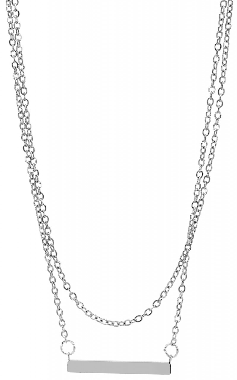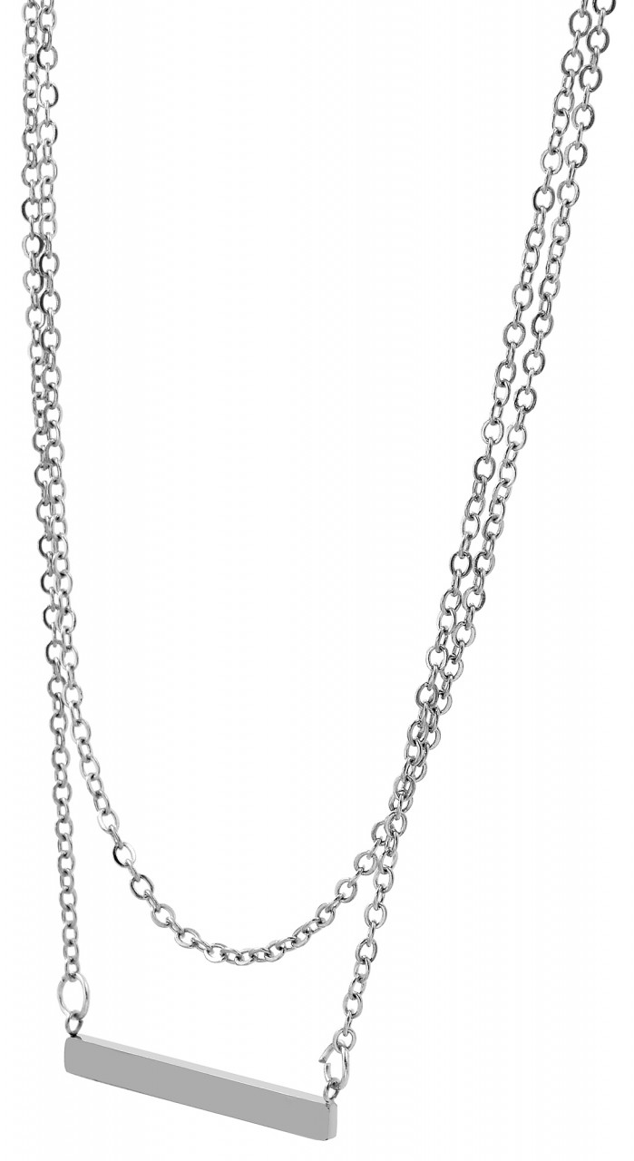 O colar da marca Praktik é feito de aço inoxidável e está disponível em diversas cores. Consiste em duas correntes de âncora em um visual moderno de camadas. Juntas as correntes têm 43 cm de comprimento, a mais curta das duas tem 40 cm de comprimento. Além disso, uma corrente de extensão de 5 cm é fixada em uma extremidade da corrente, o que permite variar o comprimento em 5 cm. O colar de 43 cm de comprimento é interrompido por uma barra de aço inoxidável. Isso cria uma aparência fascinante e é ideal para vários tipos de gravuras. A possibilidade de design individual torna o colar uma ideia excelente e pessoal para presente. O material é muito robusto, durável e também adequado para quem sofre de alergias, uma vez que o aço inoxidável é particularmente amigo da pele.