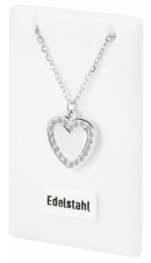O colar da marca Praktik é feito de aço inoxidável e está disponível em diversas cores. É constituída por uma corrente de âncora com 43 cm de comprimento, decorada com um pingente de coração gravável em aço inoxidável. Além disso, uma corrente de extensão de 5 cm é fixada em uma extremidade da corrente, o que permite variar o comprimento em 5 cm. O pingente gravado é decorado ao redor com pedras simil brilhantes. Tem comprimento de 18 mm, largura de 16 mm e espessura de material de 2 mm. Graças à possibilidade de design individual, o colar é uma ideia excelente e pessoal para presente. O material é muito robusto, durável e também adequado para quem sofre de alergias, uma vez que o aço inoxidável é particularmente amigo da pele. Além disso, as joias são parcialmente refinadas com revestimento iônico de alta qualidade.
