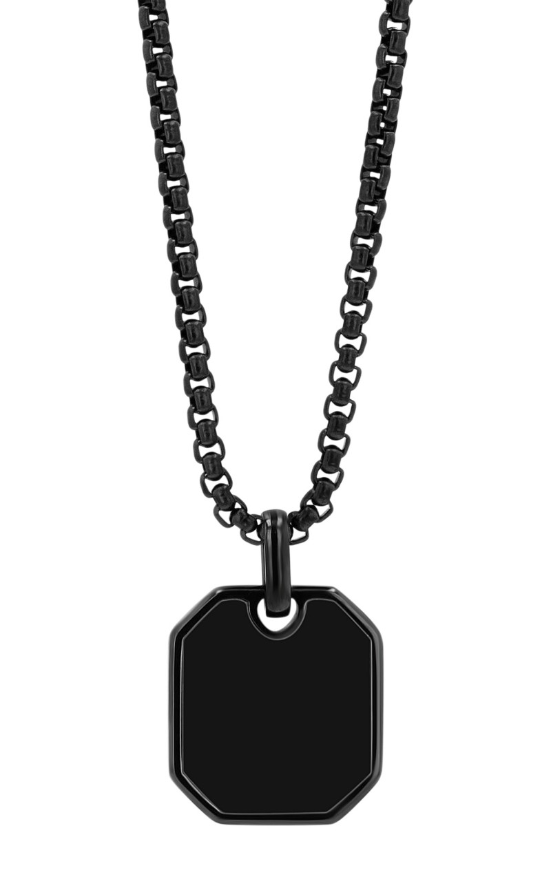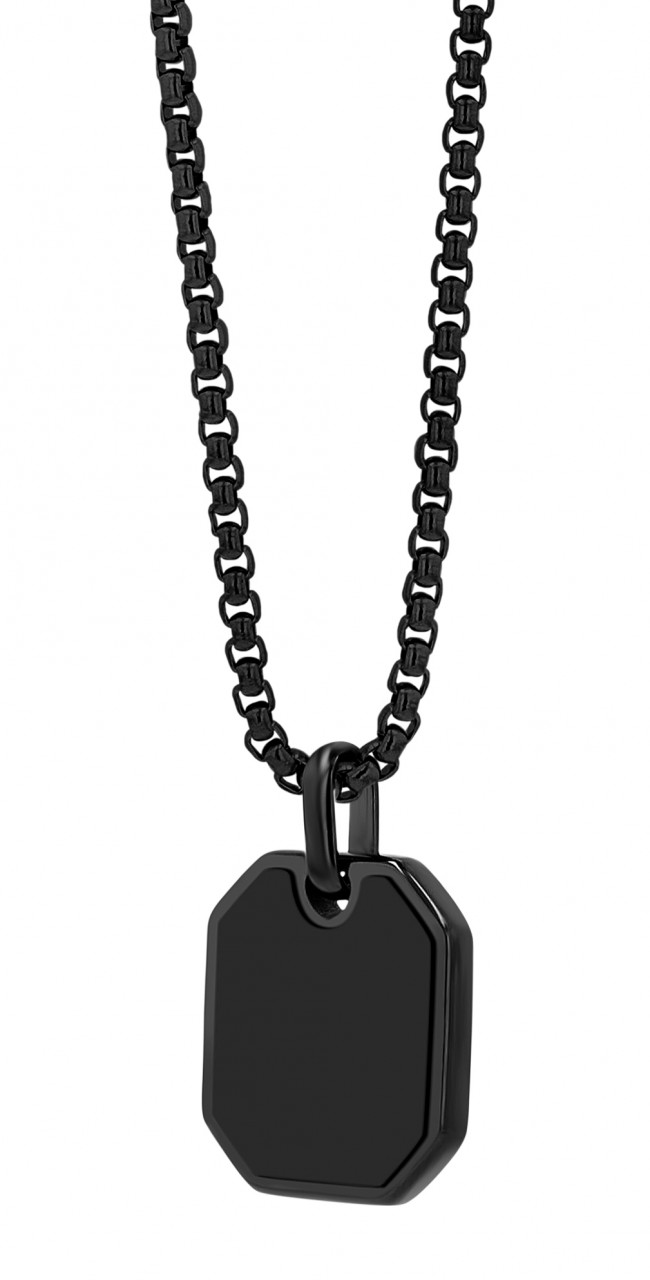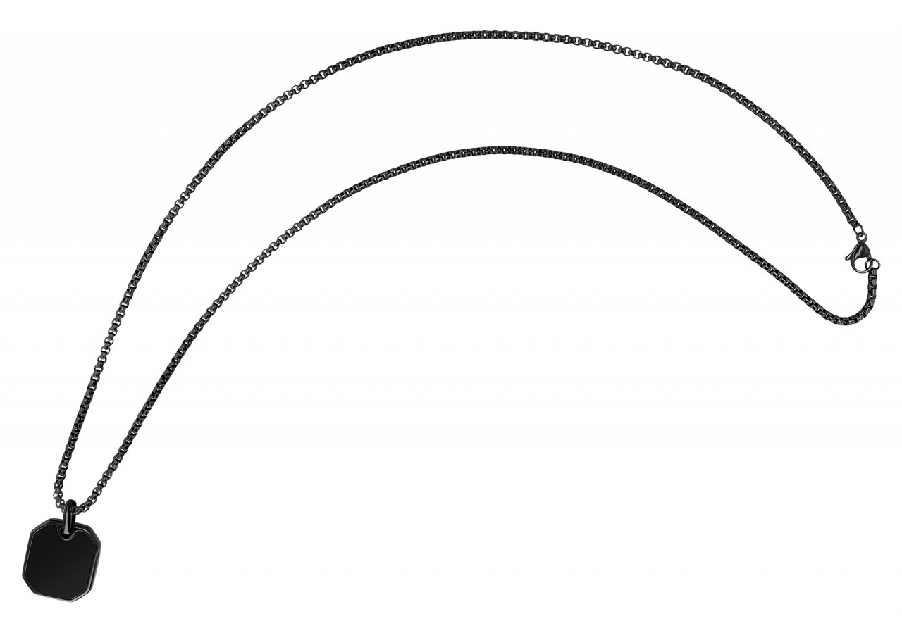 O colar de realce “Zarah” é feito de aço inoxidável de alta qualidade, que não só é durável como também esteticamente agradável. O design preto confere ao colar de 60 cm de comprimento uma aura misteriosa mas moderna que combina na perfeição com diferentes estilos. A caraterística especial desta peça de joalharia é o revestimento iónico. Esta tecnologia inovadora assegura um revestimento duradouro e uniforme, que não só aumenta a durabilidade da corrente, como também lhe confere um brilho radiante. O revestimento iónico não só confere ao colar uma superfície impressionante, como também o protege de influências externas. O pendente é a peça central deste colar e tem a forma única de um octógono. Com 20 x 18 x 3 mm, o pendente oferece espaço suficiente para gravações personalizadas.