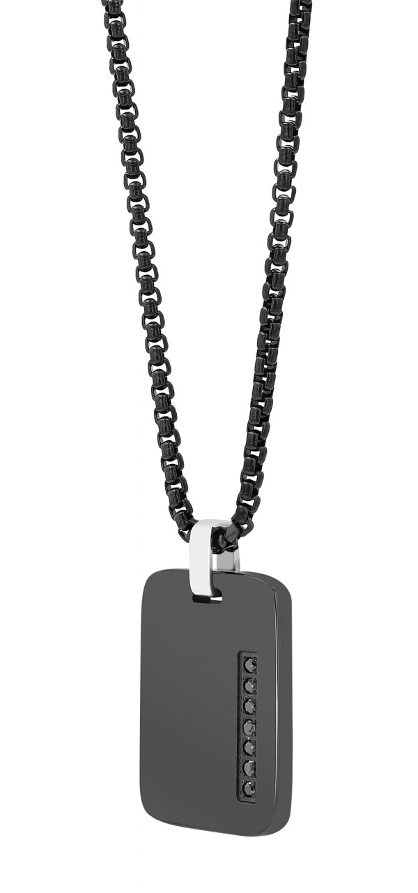 O colar “Azra” combina um design sofisticado, materiais de alta qualidade e a possibilidade de personalização graças ao pendente quadrado único. Tem 60 cm de comprimento e é fabricado em aço inoxidável de alta qualidade, que não só tem estilo como também é resistente e muito robusto. O pendente quadrado impressiona pela sua forma elegante e cantos arredondados. Com 25 x 17 x 3 mm, oferece espaço suficiente para gravações personalizadas. A capacidade de gravação faz deste colar uma obra de arte personalizada que capta memórias e transforma momentos especiais em beleza intemporal. A parte da frente do pendente com gravação é altamente polida e brilha com um lustre impressionante, enquanto a parte de trás mate acrescenta um toque subtil e moderno. Pedras pretas semelhantes adornam o lado direito do pendente, realçando o design elegante do colar.
