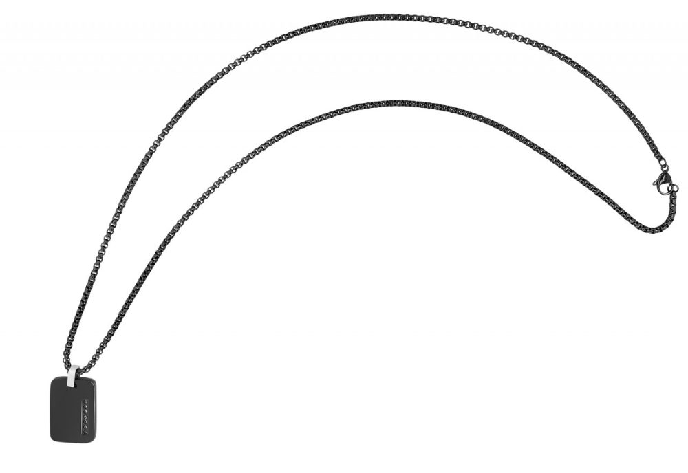O colar “Azra” combina um design sofisticado, materiais de alta qualidade e a possibilidade de personalização graças ao pendente quadrado único. Tem 60 cm de comprimento e é fabricado em aço inoxidável de alta qualidade, que não só tem estilo como também é resistente e muito robusto. O pendente quadrado impressiona pela sua forma elegante e cantos arredondados. Com 25 x 17 x 3 mm, oferece espaço suficiente para gravações personalizadas. A capacidade de gravação faz deste colar uma obra de arte personalizada que capta memórias e transforma momentos especiais em beleza intemporal. A parte da frente do pendente com gravação é altamente polida e brilha com um lustre impressionante, enquanto a parte de trás mate acrescenta um toque subtil e moderno. Pedras pretas semelhantes adornam o lado direito do pendente, realçando o design elegante do colar.