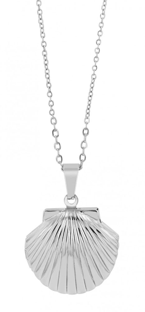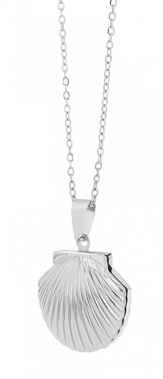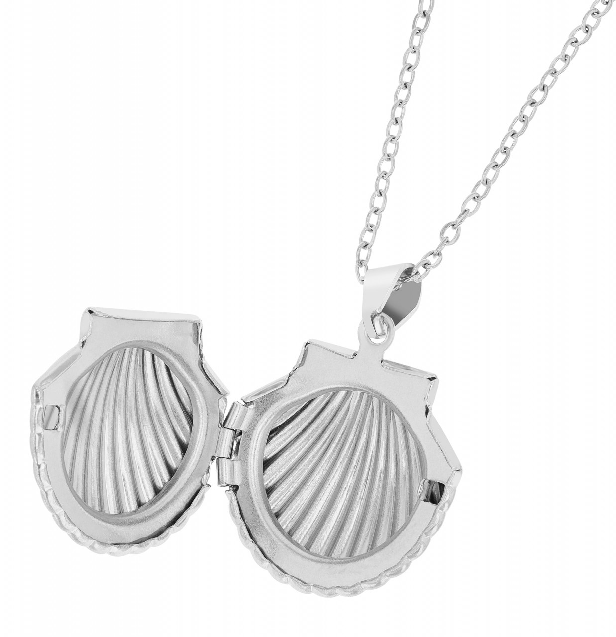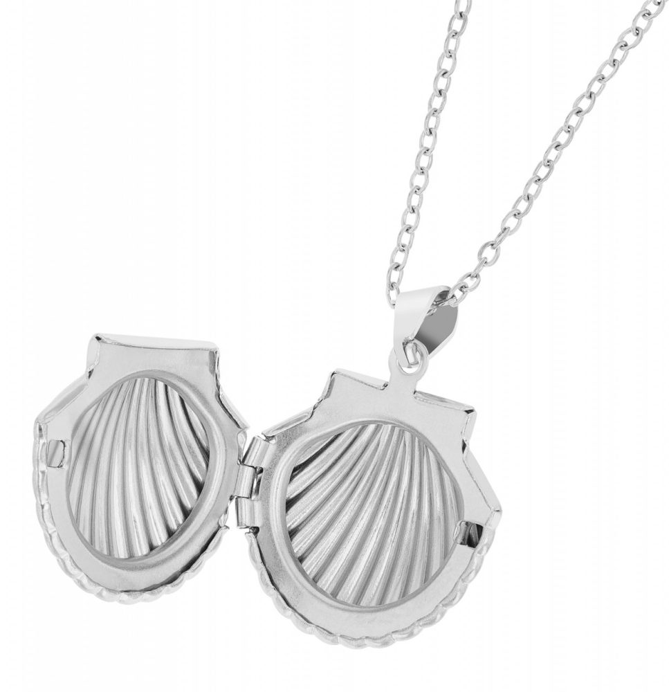 Akzent® Colar Medalhão Concha Prateado em Aço Inoxidável 0590